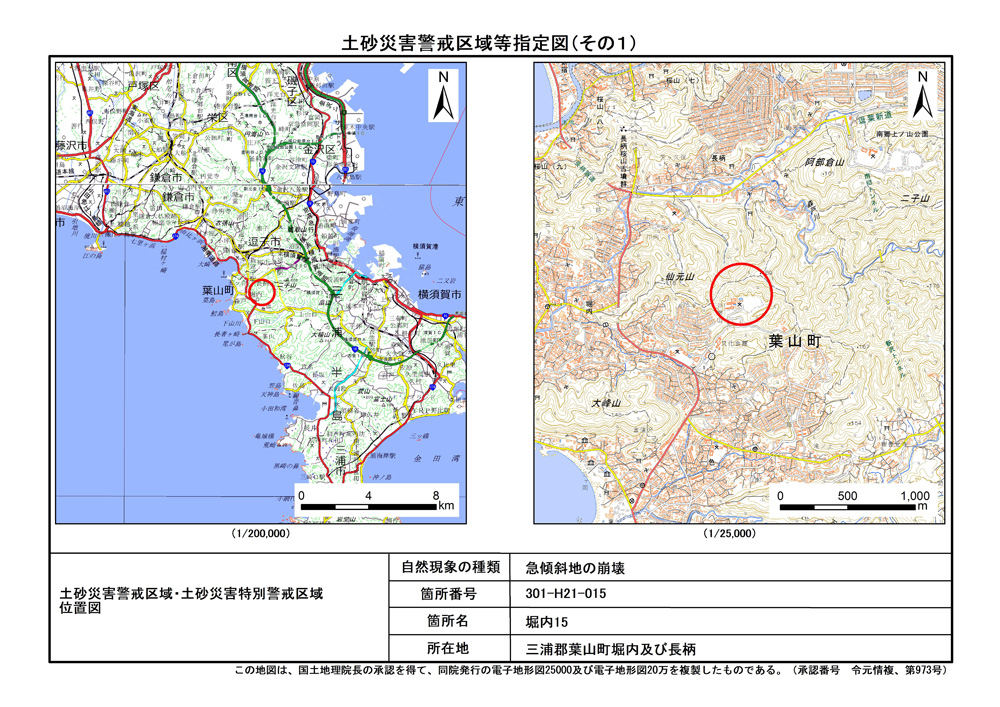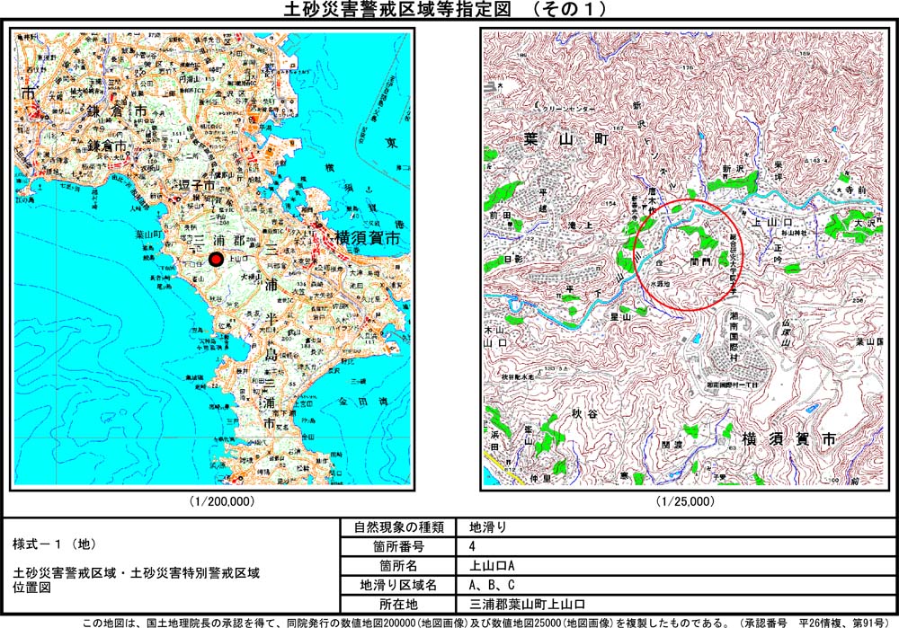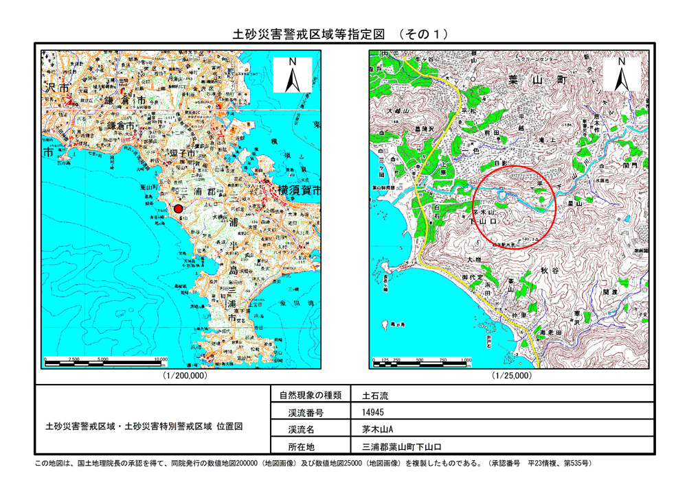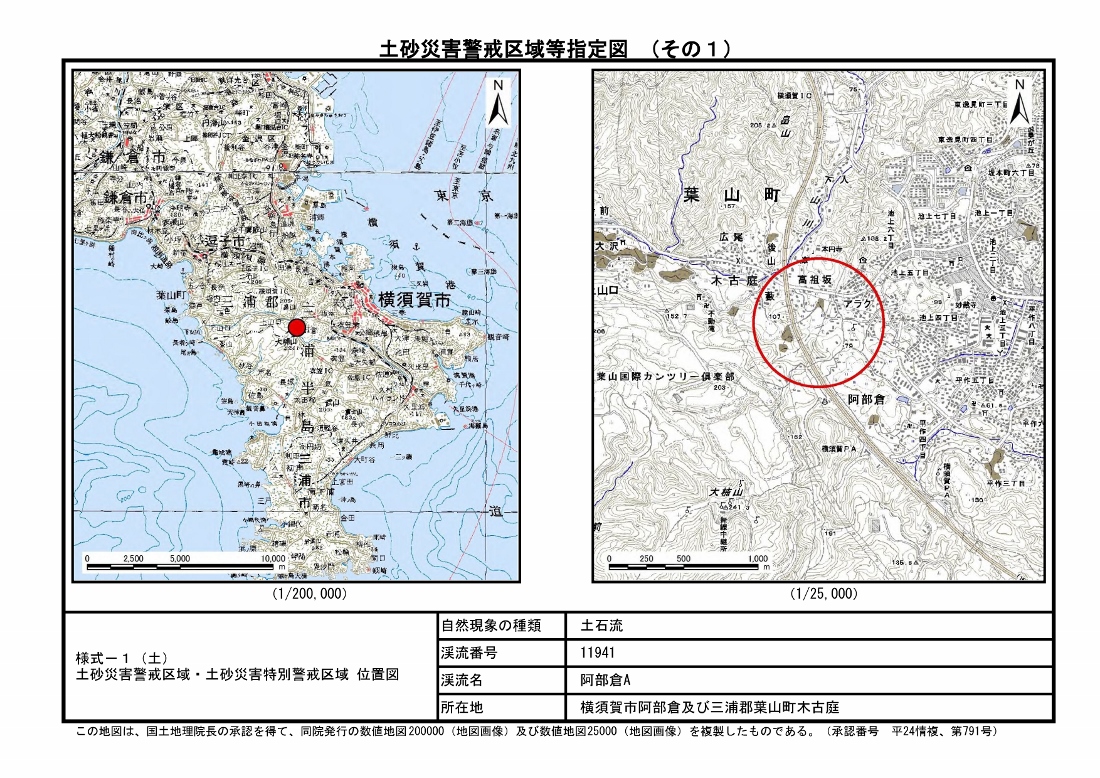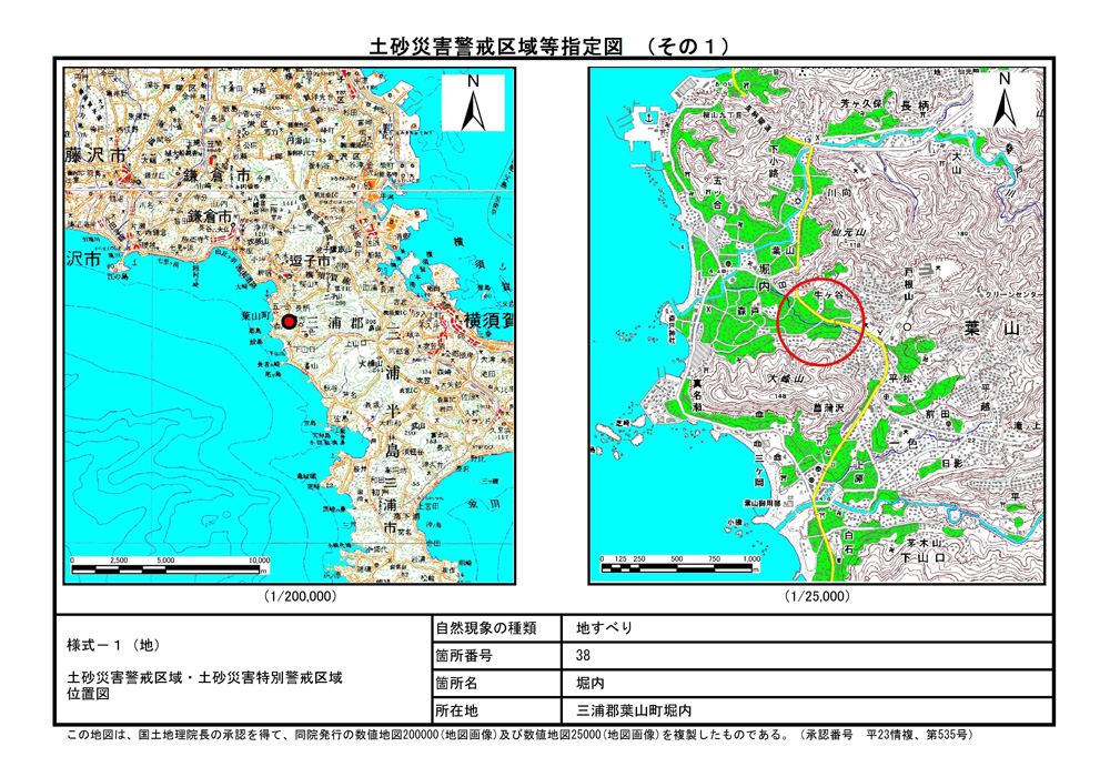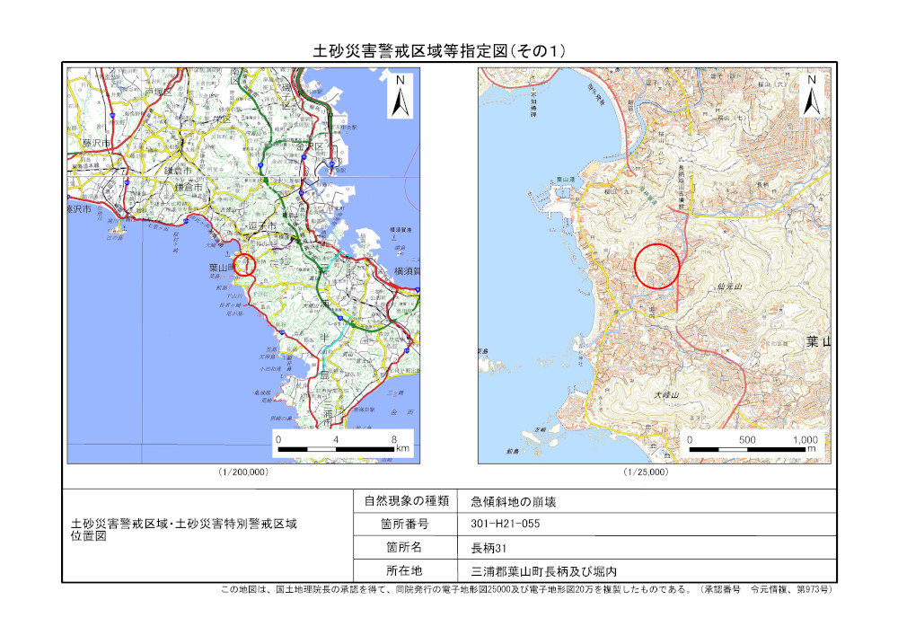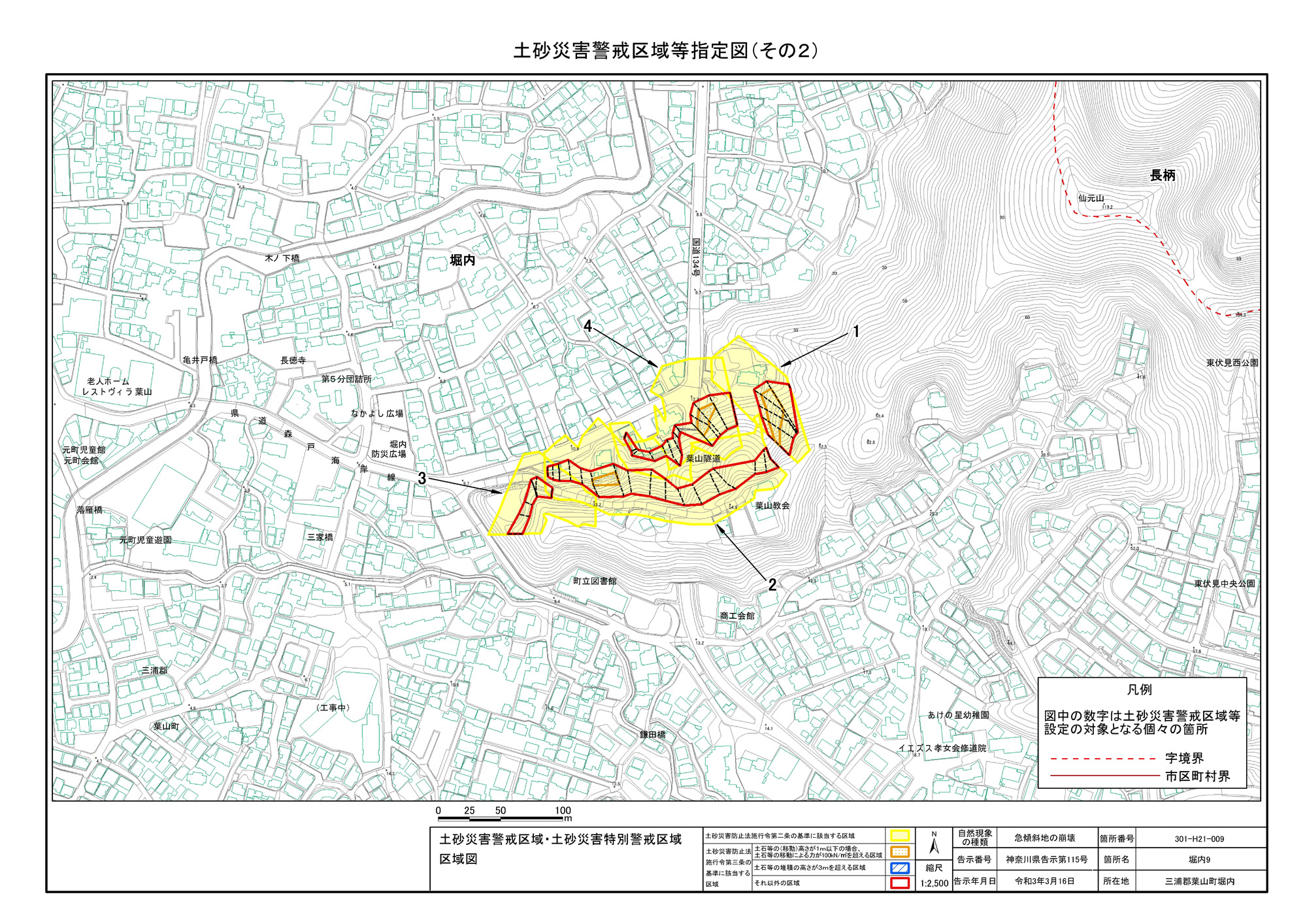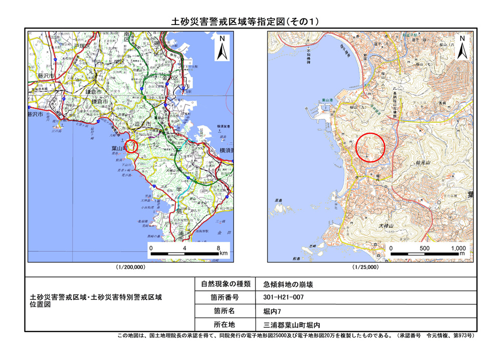 三浦郡葉山町木古庭、横須賀市山中町及び池上7丁目 |