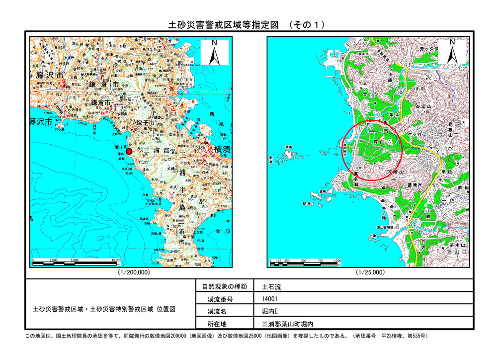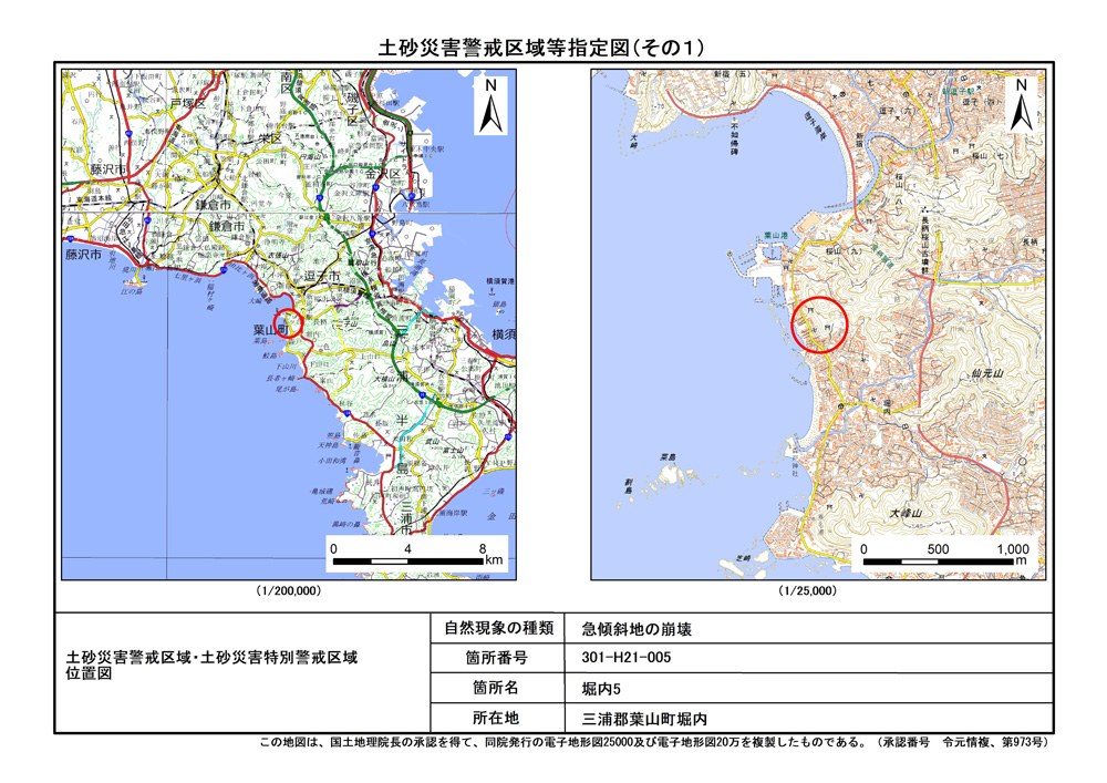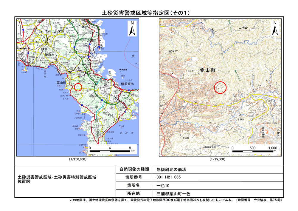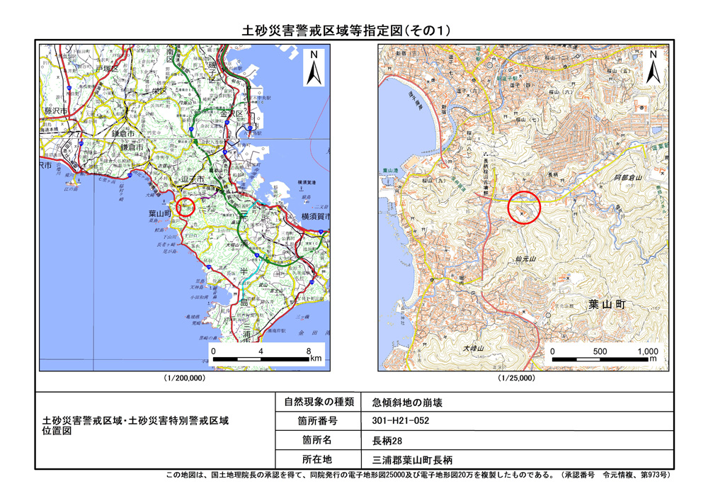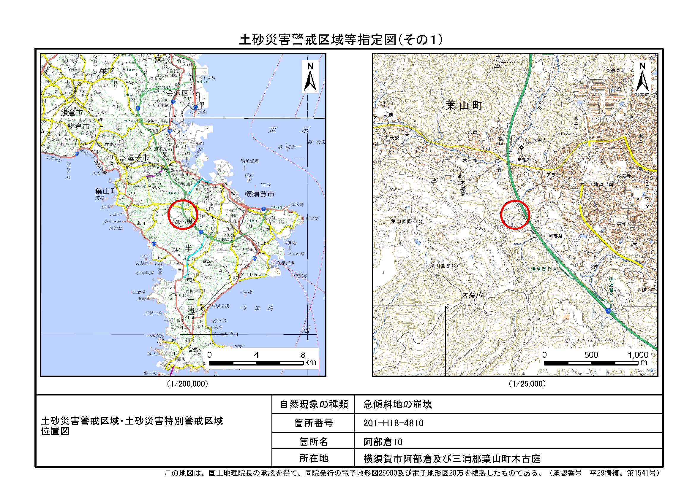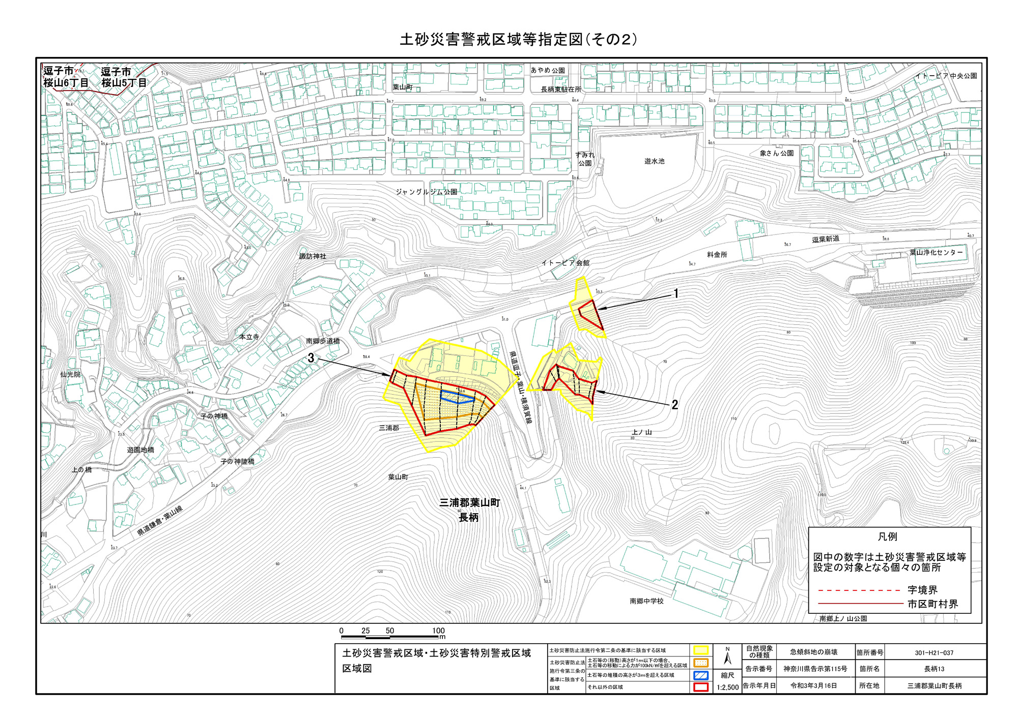 三浦郡葉山町木古庭、横須賀市山中町及び池上7丁目 |