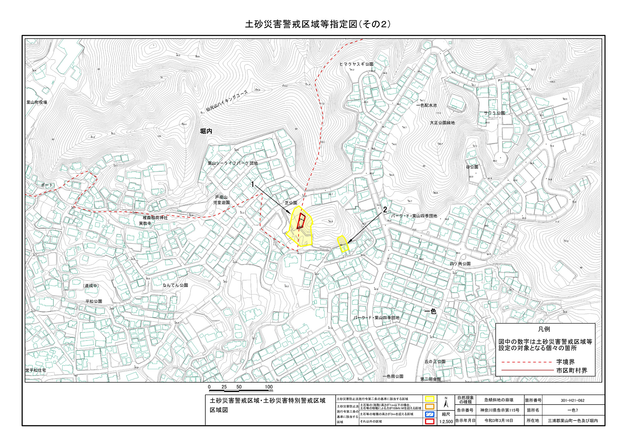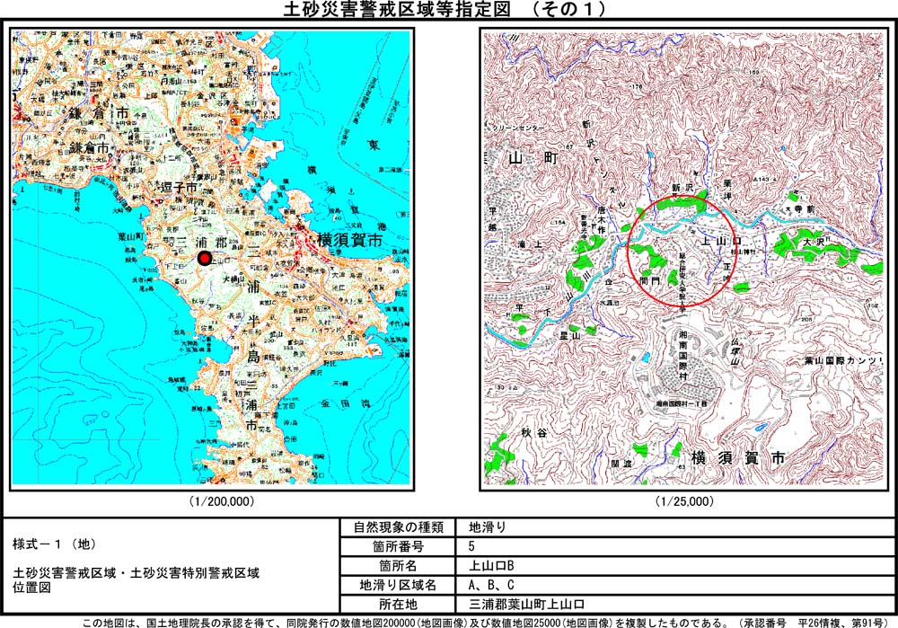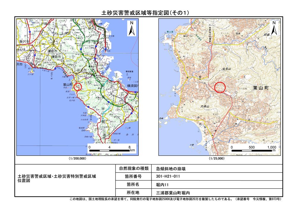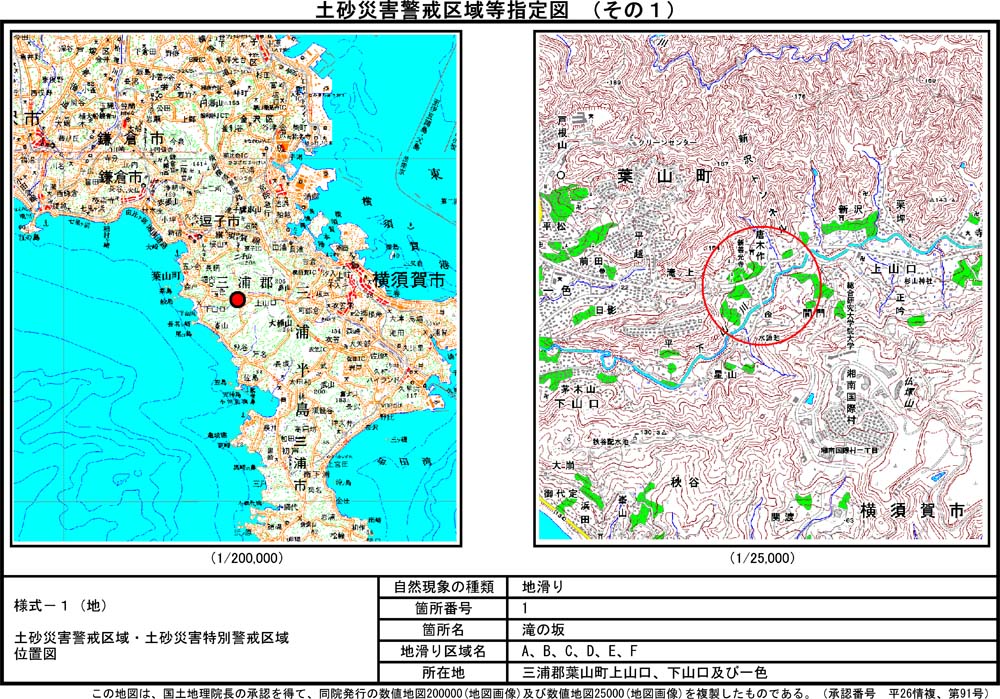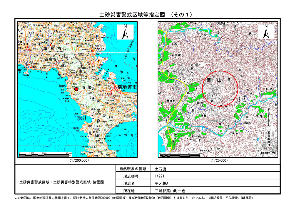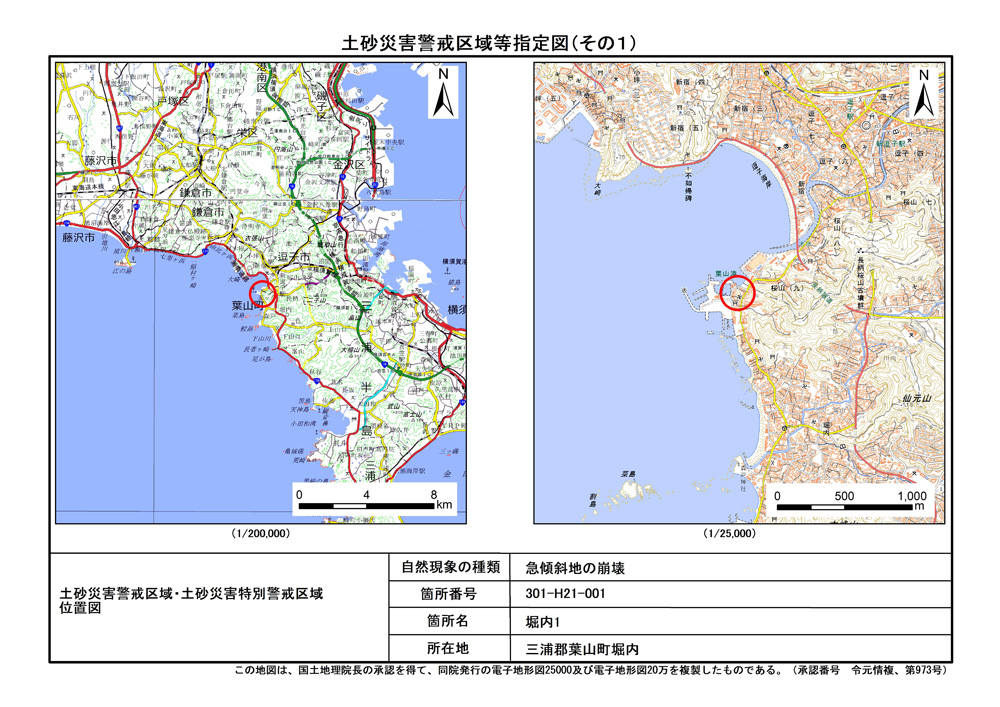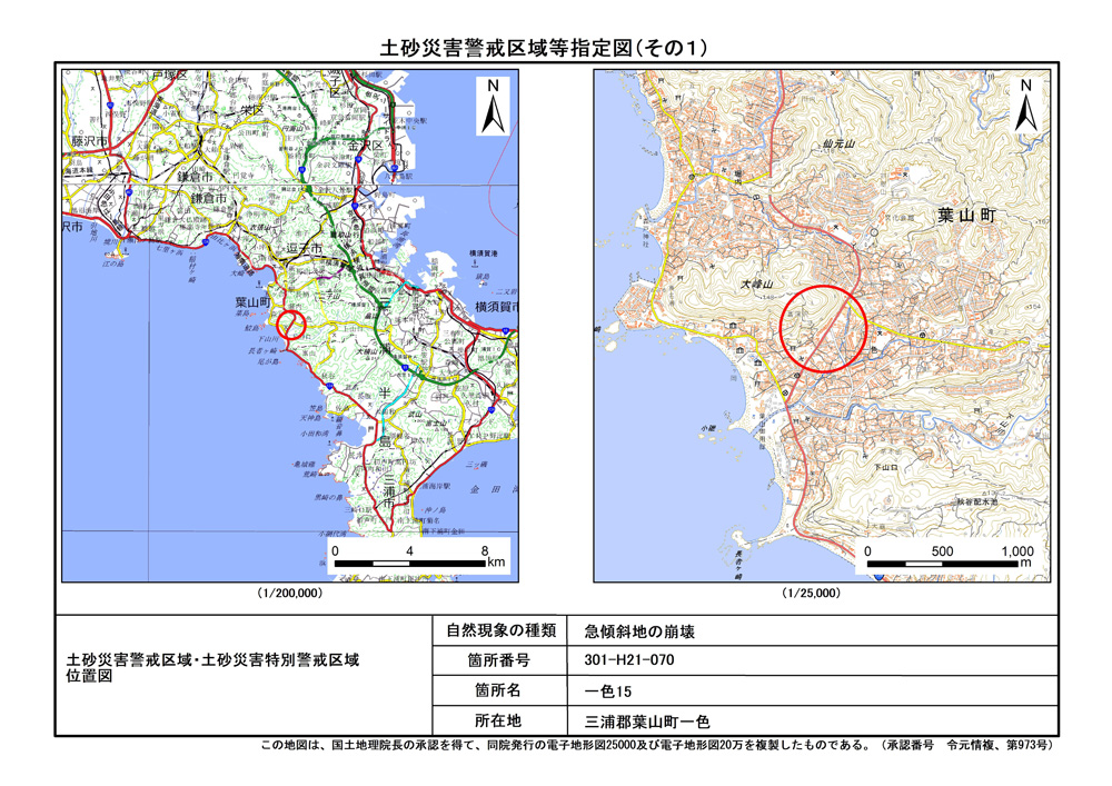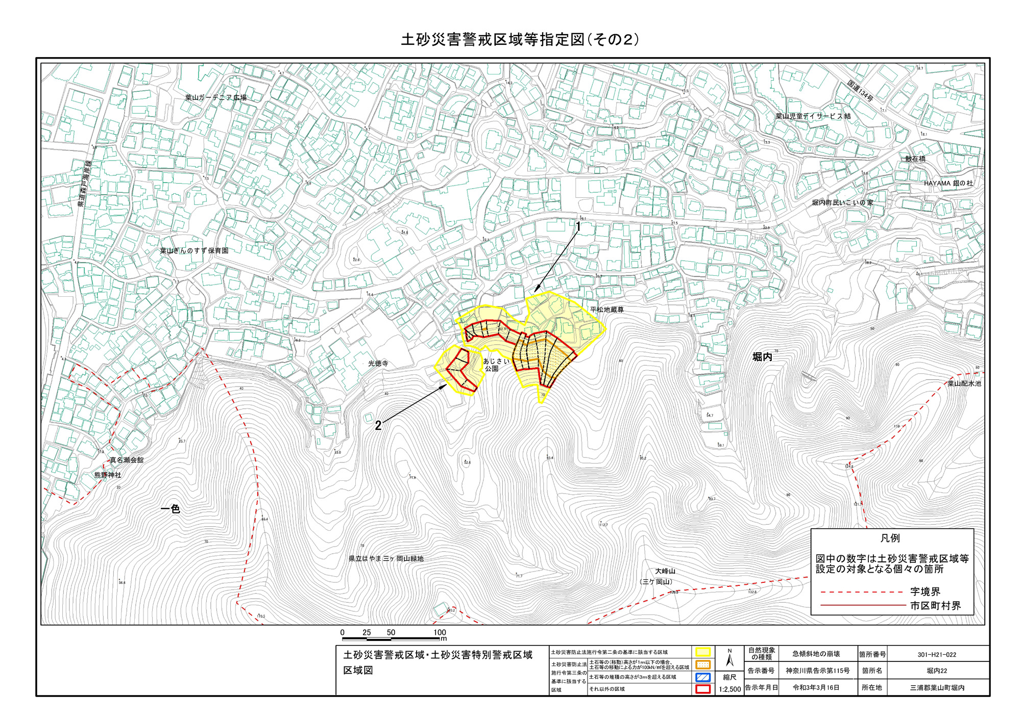 三浦郡葉山町木古庭、横須賀市山中町及び池上7丁目 |