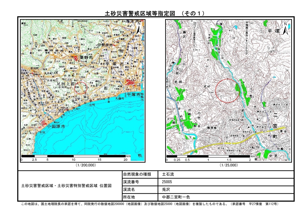 土砂災害警戒区域及び土砂災害特別警戒区域 告示図書
