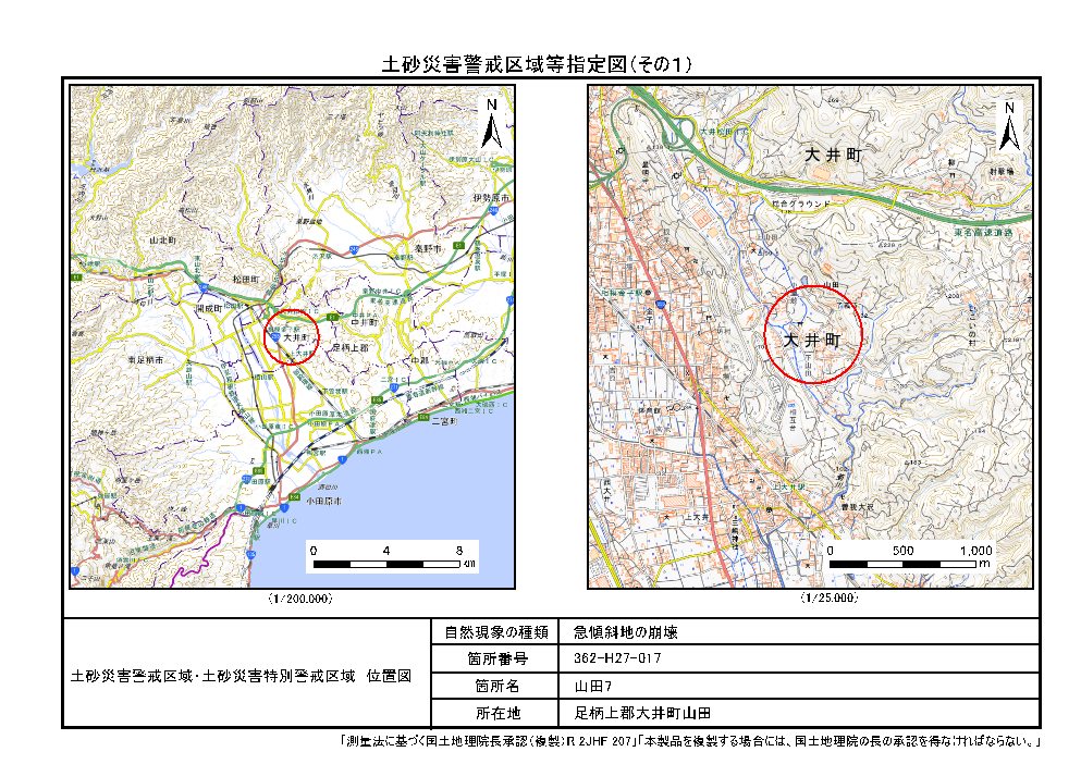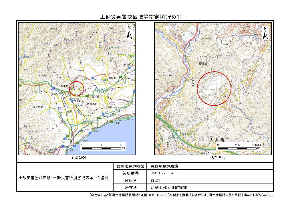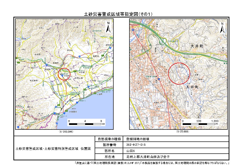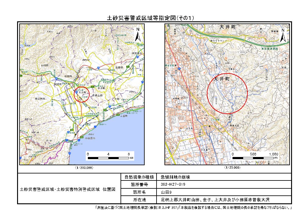 土砂災害警戒区域及び土砂災害特別警戒区域 告示図書