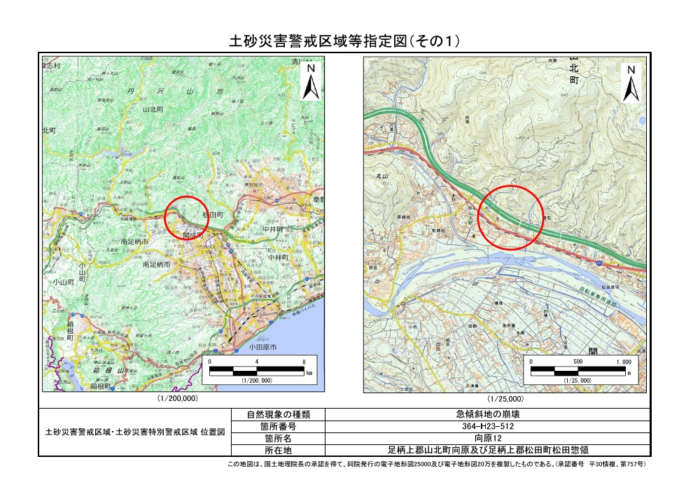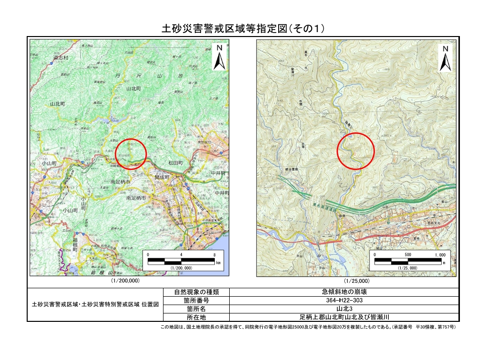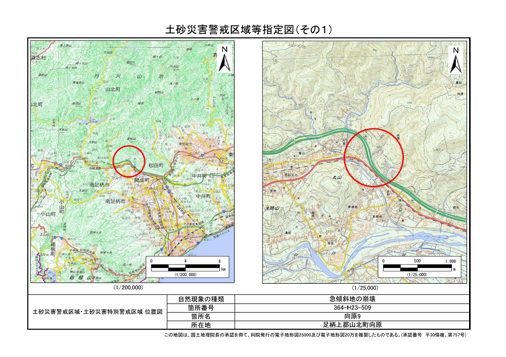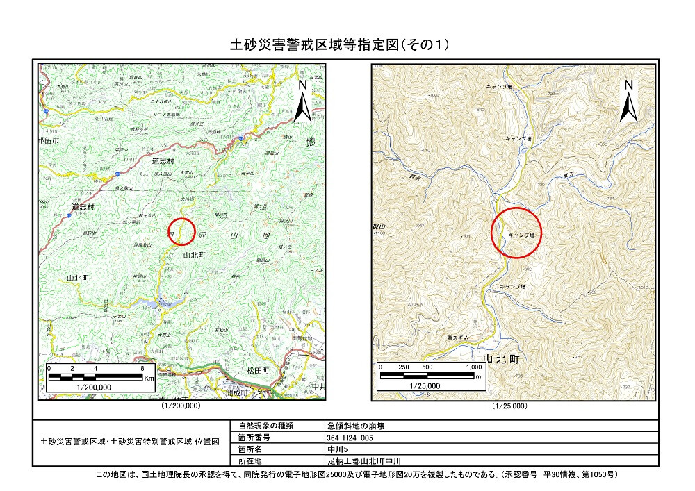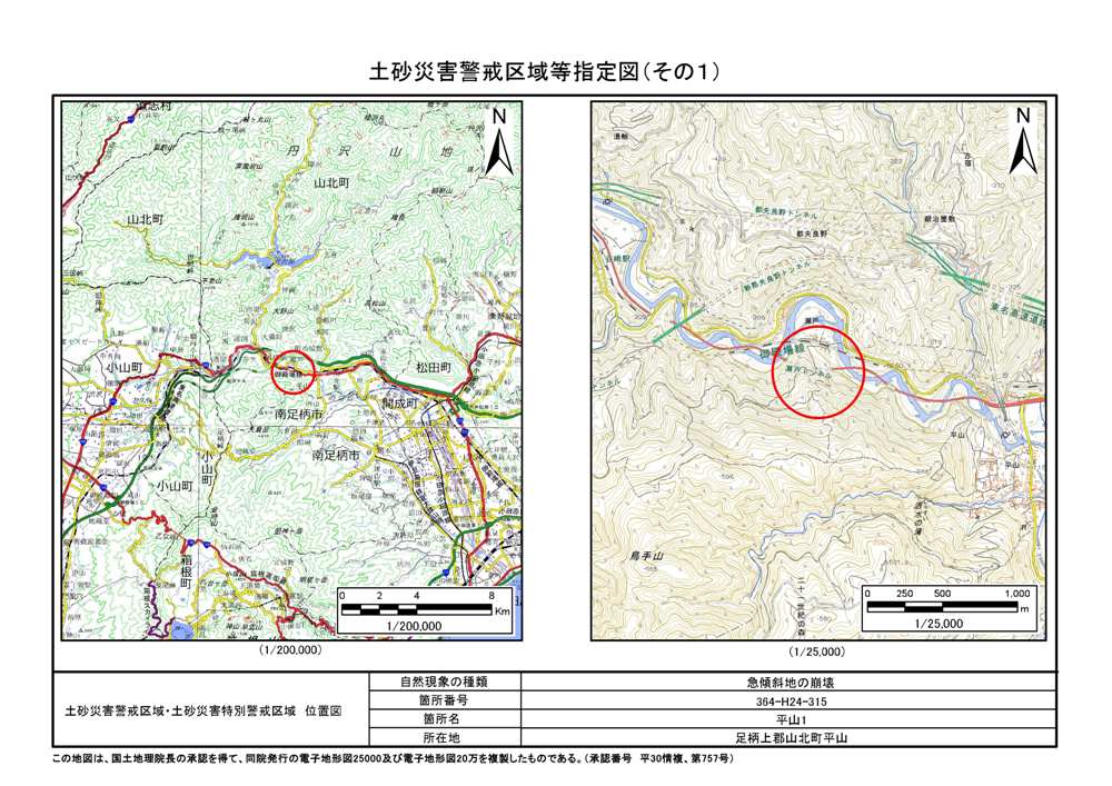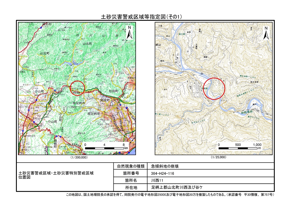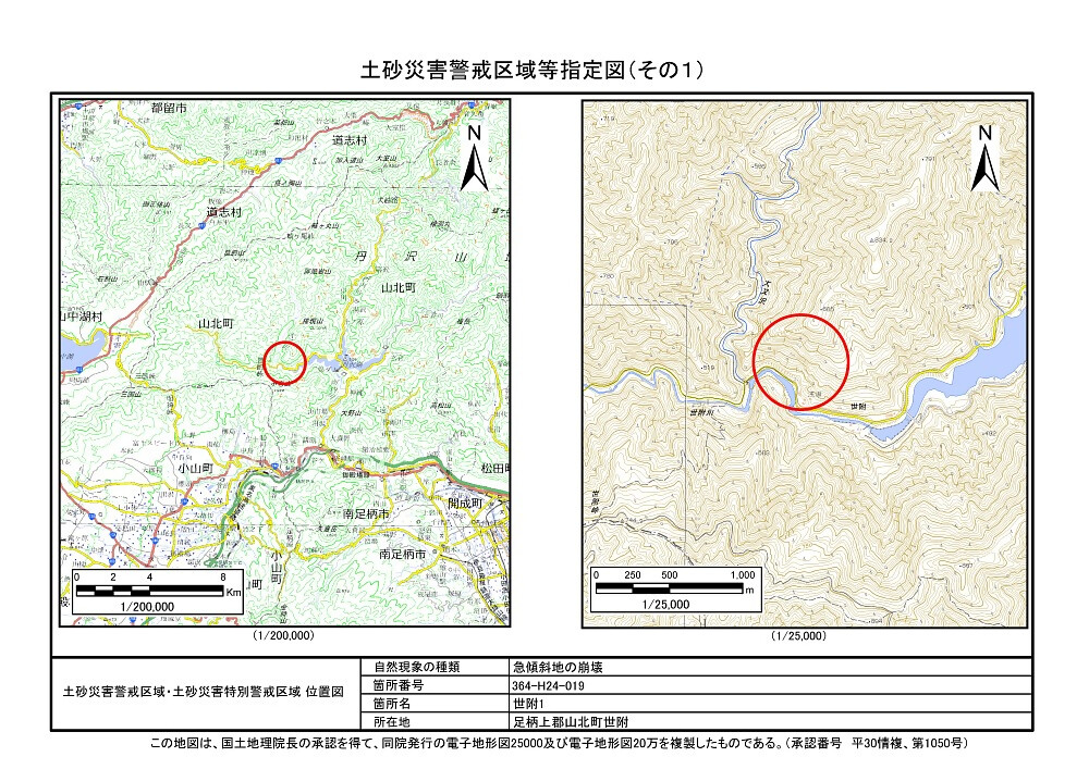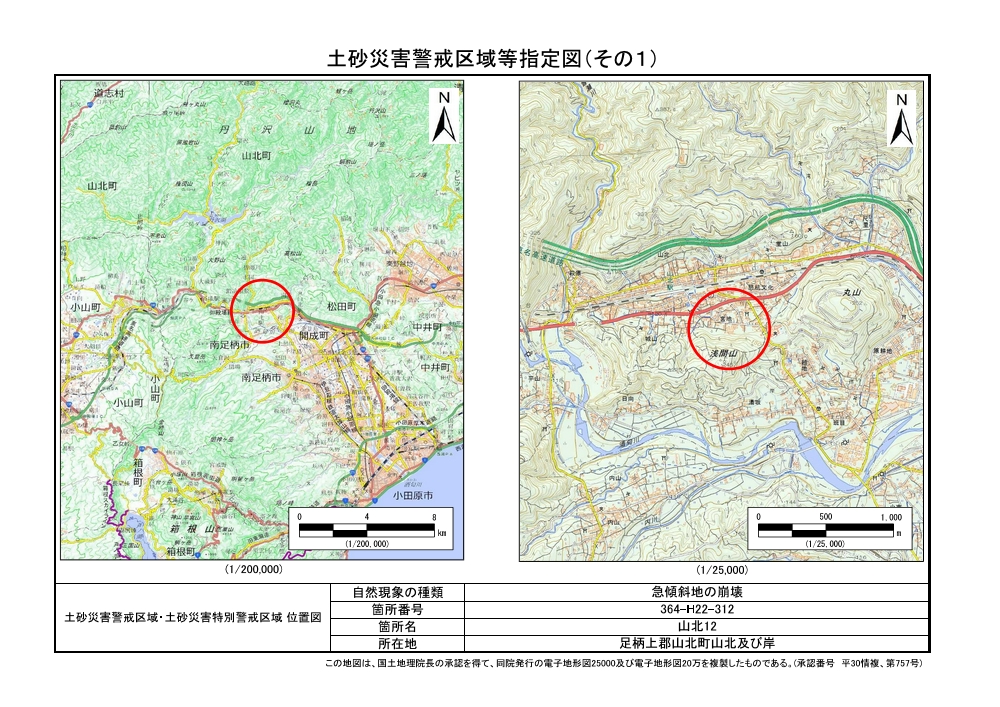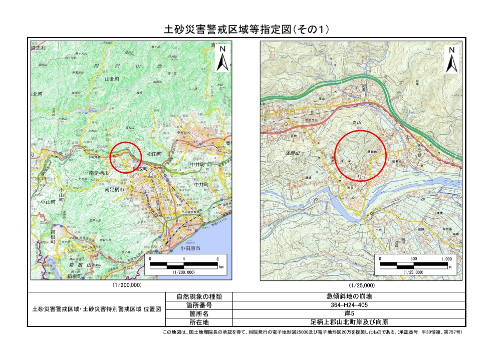 土砂災害警戒区域及び土砂災害特別警戒区域 告示図書
