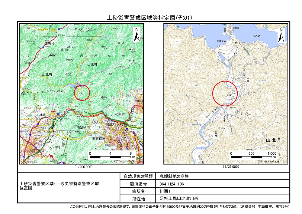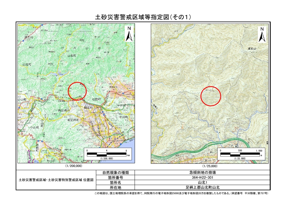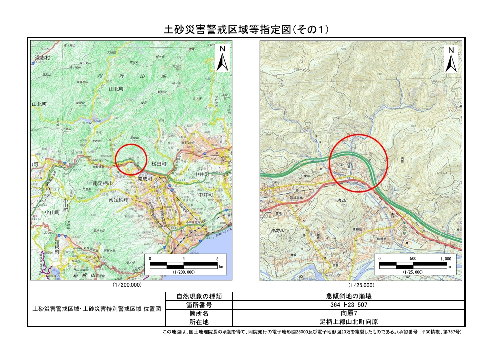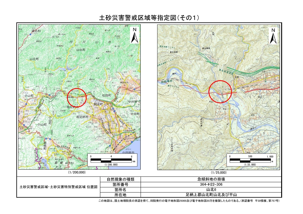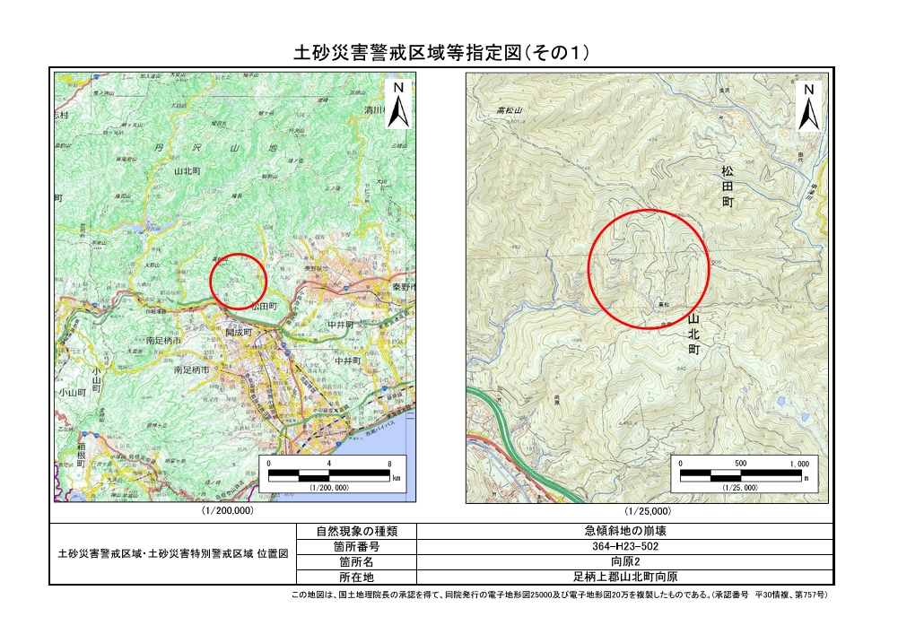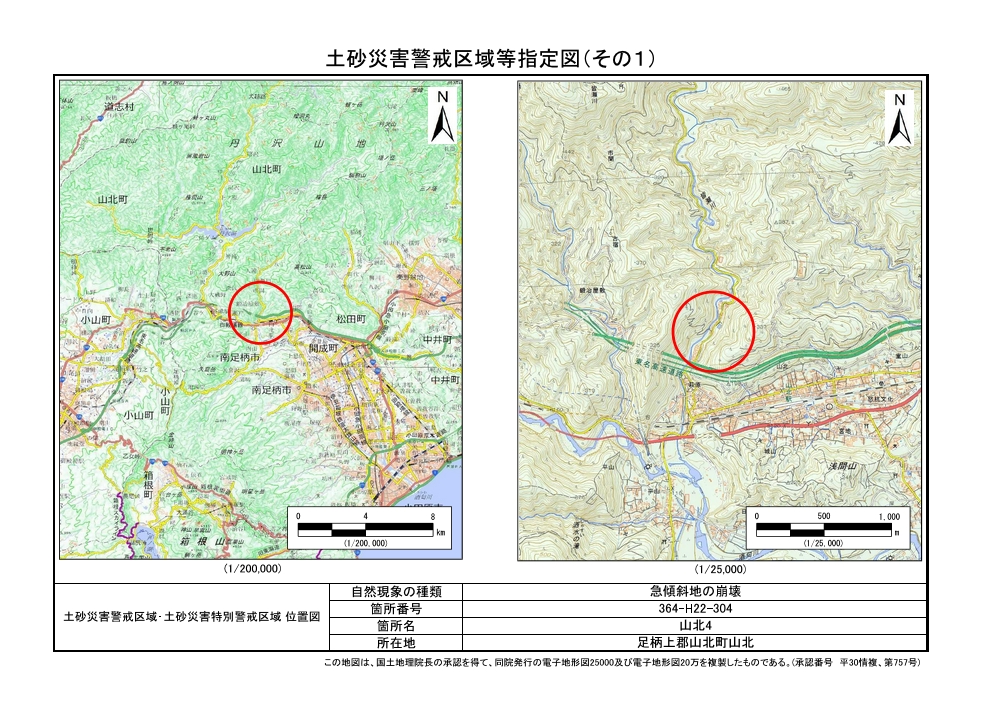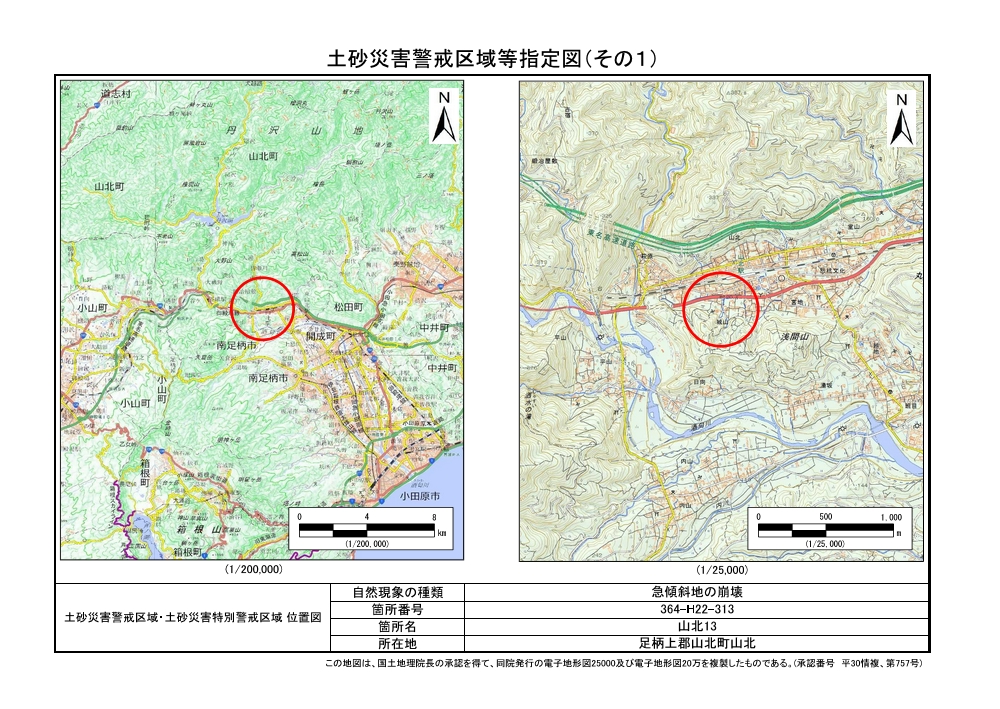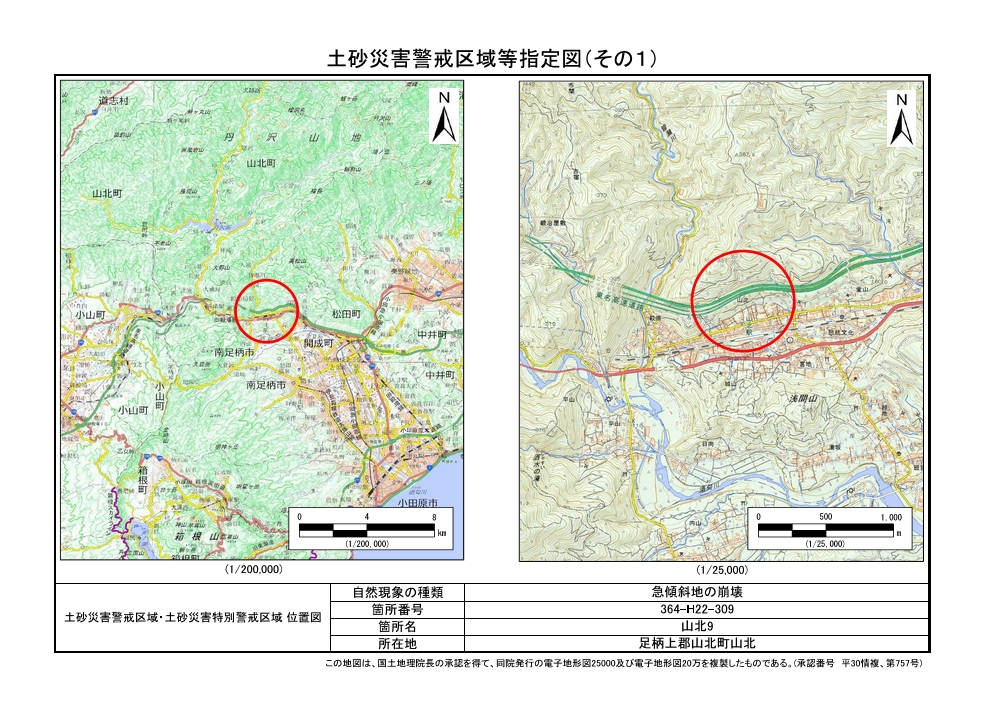 土砂災害警戒区域及び土砂災害特別警戒区域 告示図書
