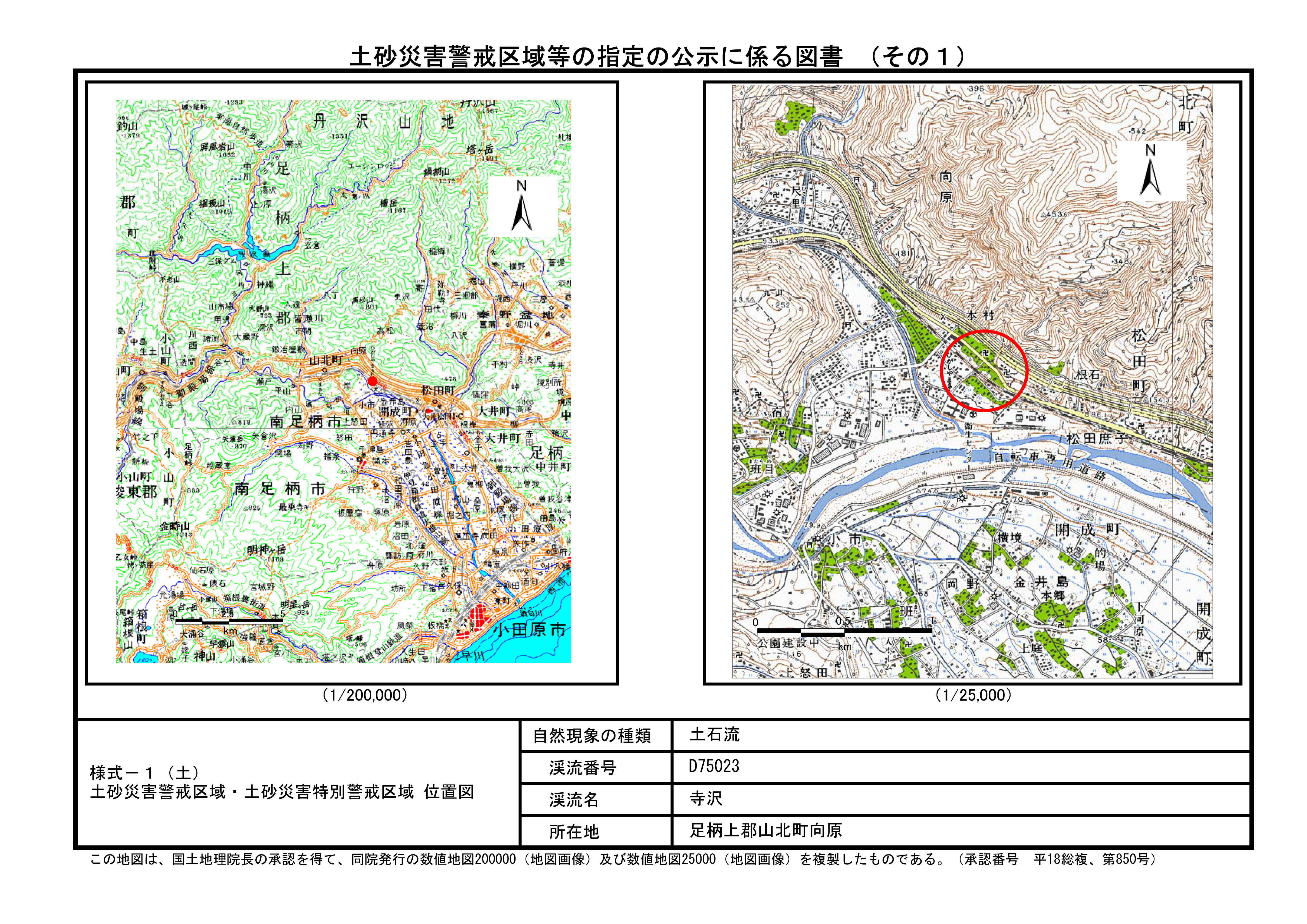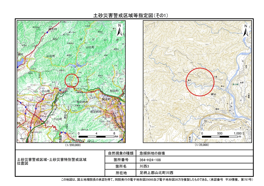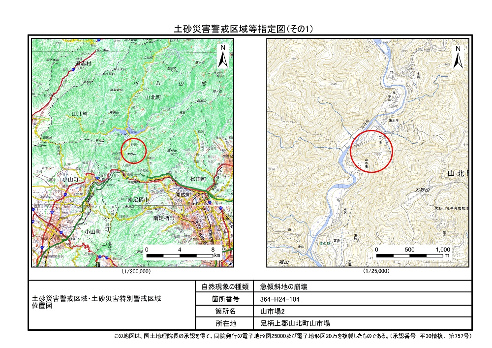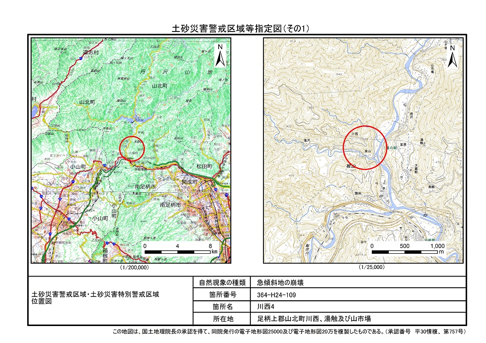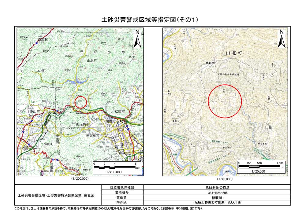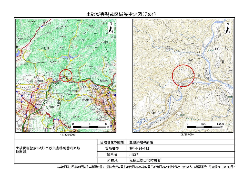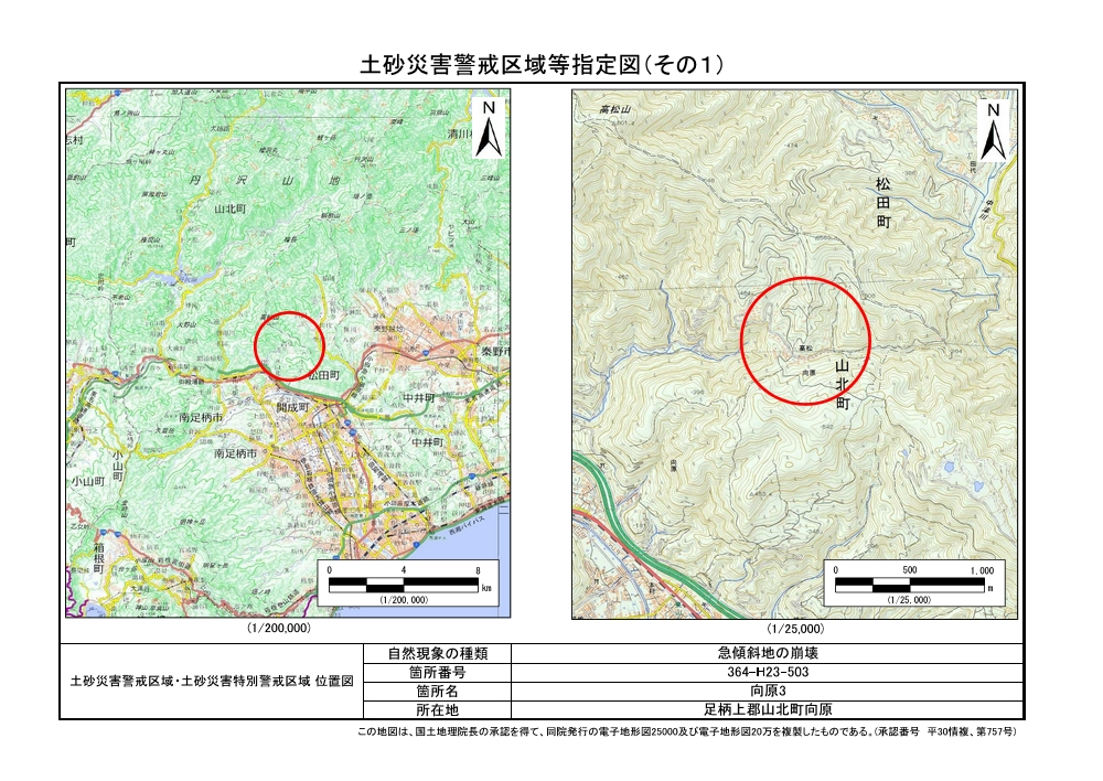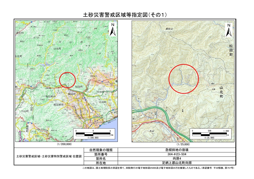 土砂災害警戒区域及び土砂災害特別警戒区域 告示図書