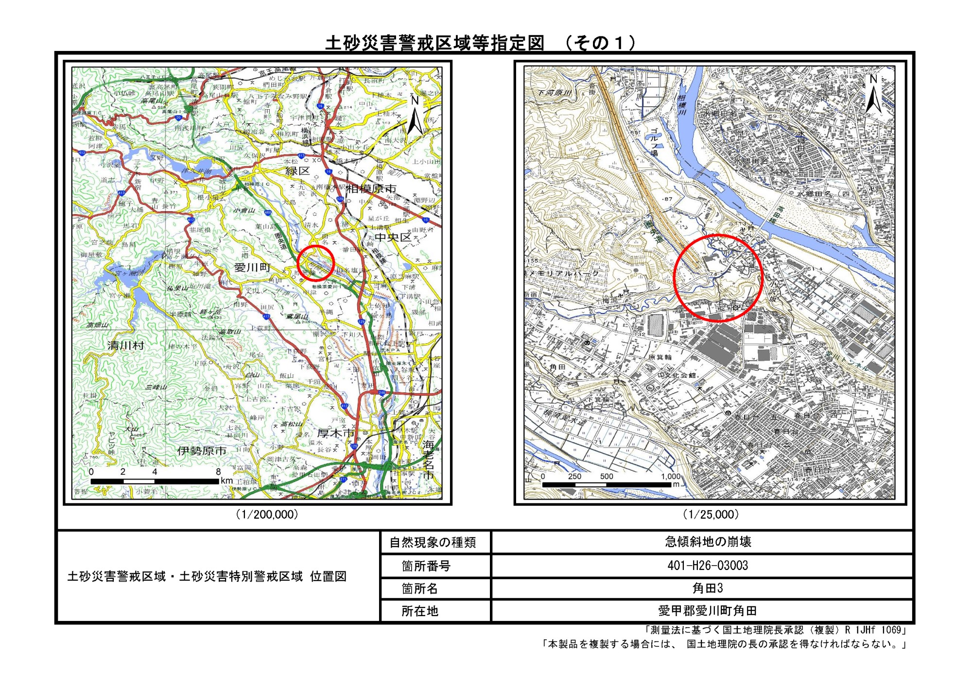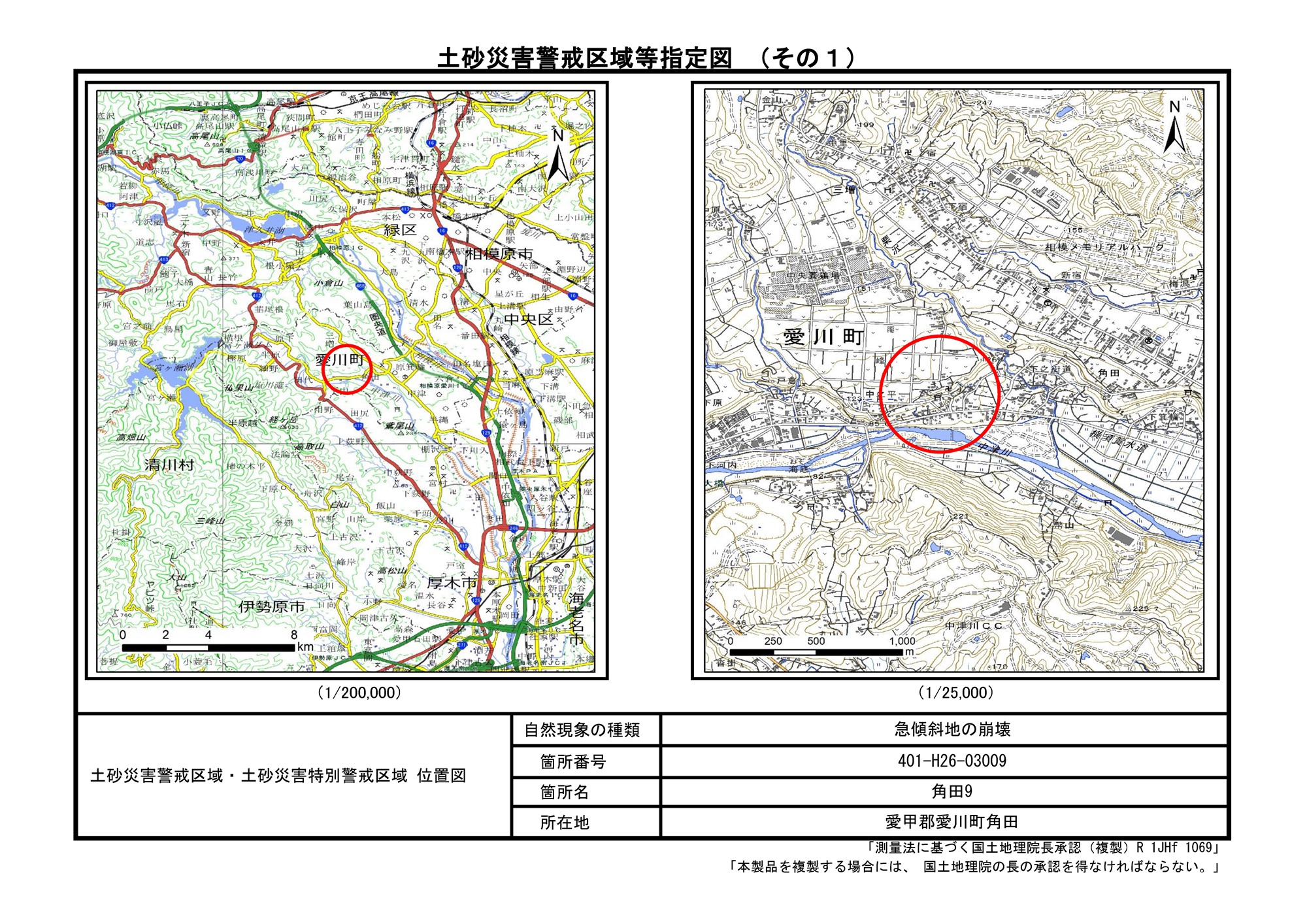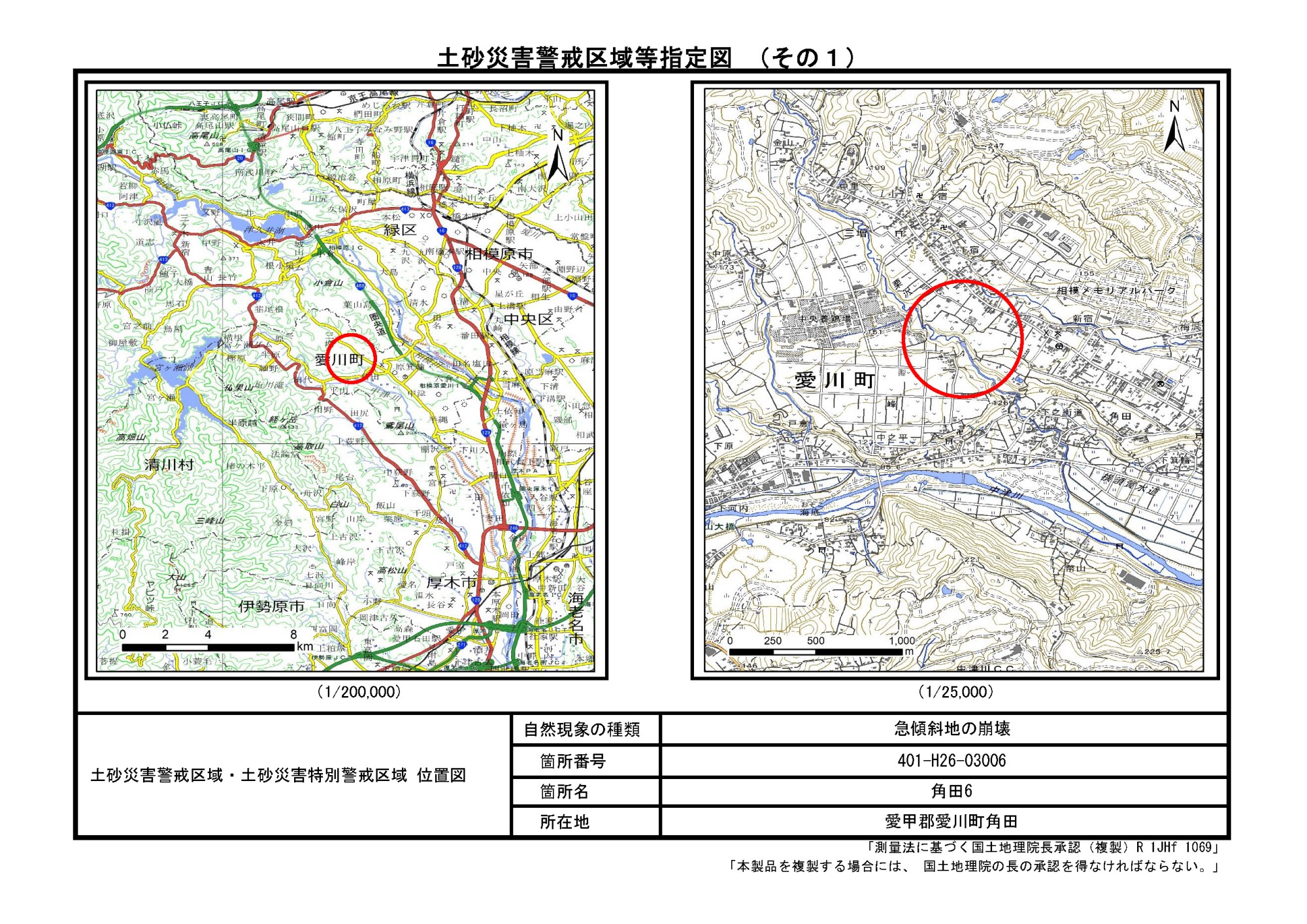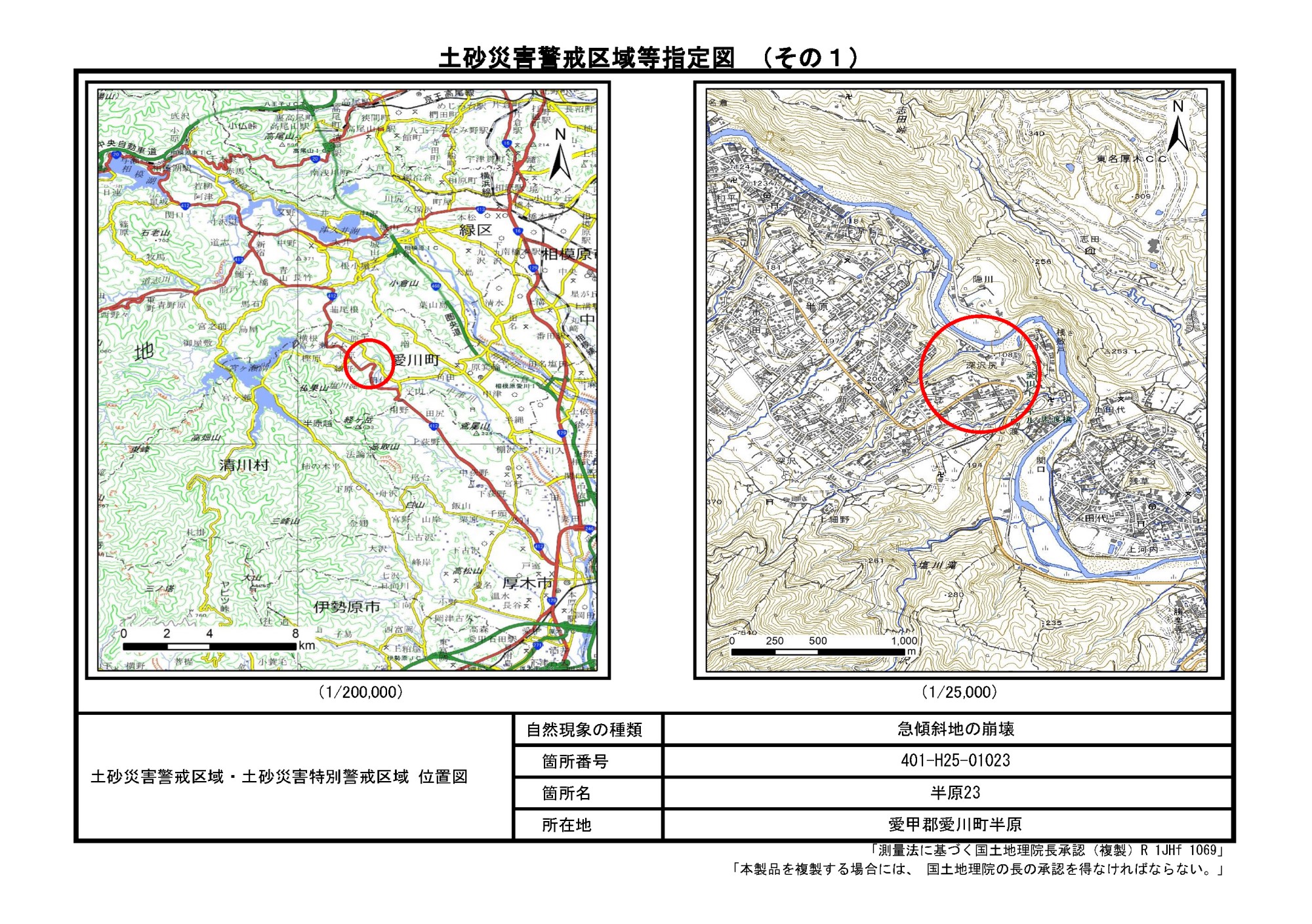 土砂災害警戒区域及び土砂災害特別警戒区域 告示図書