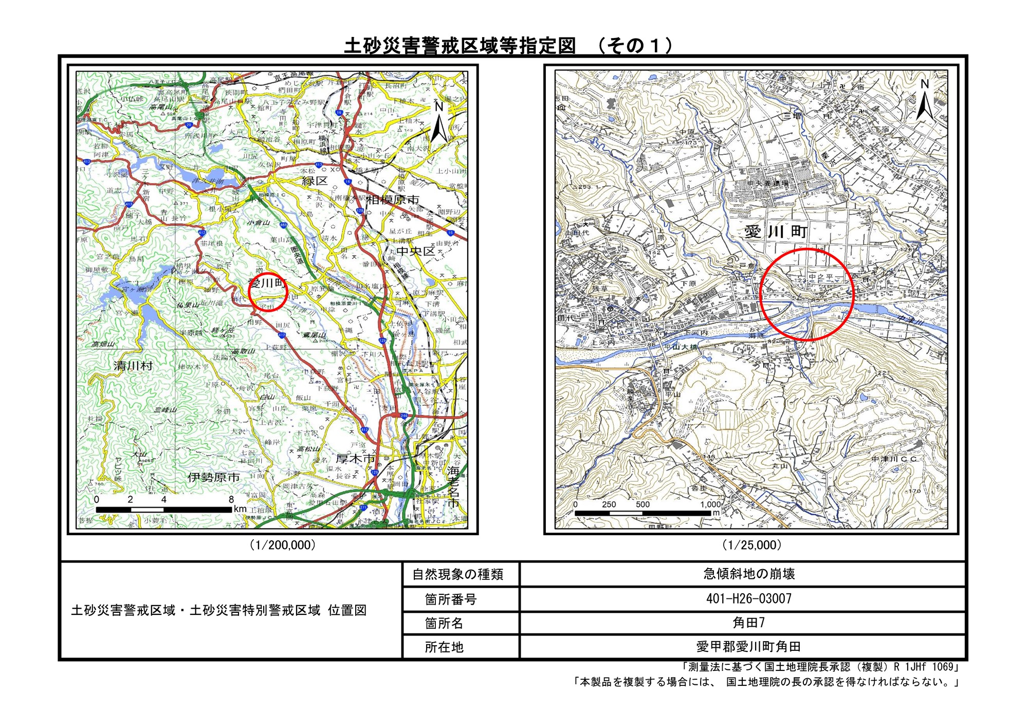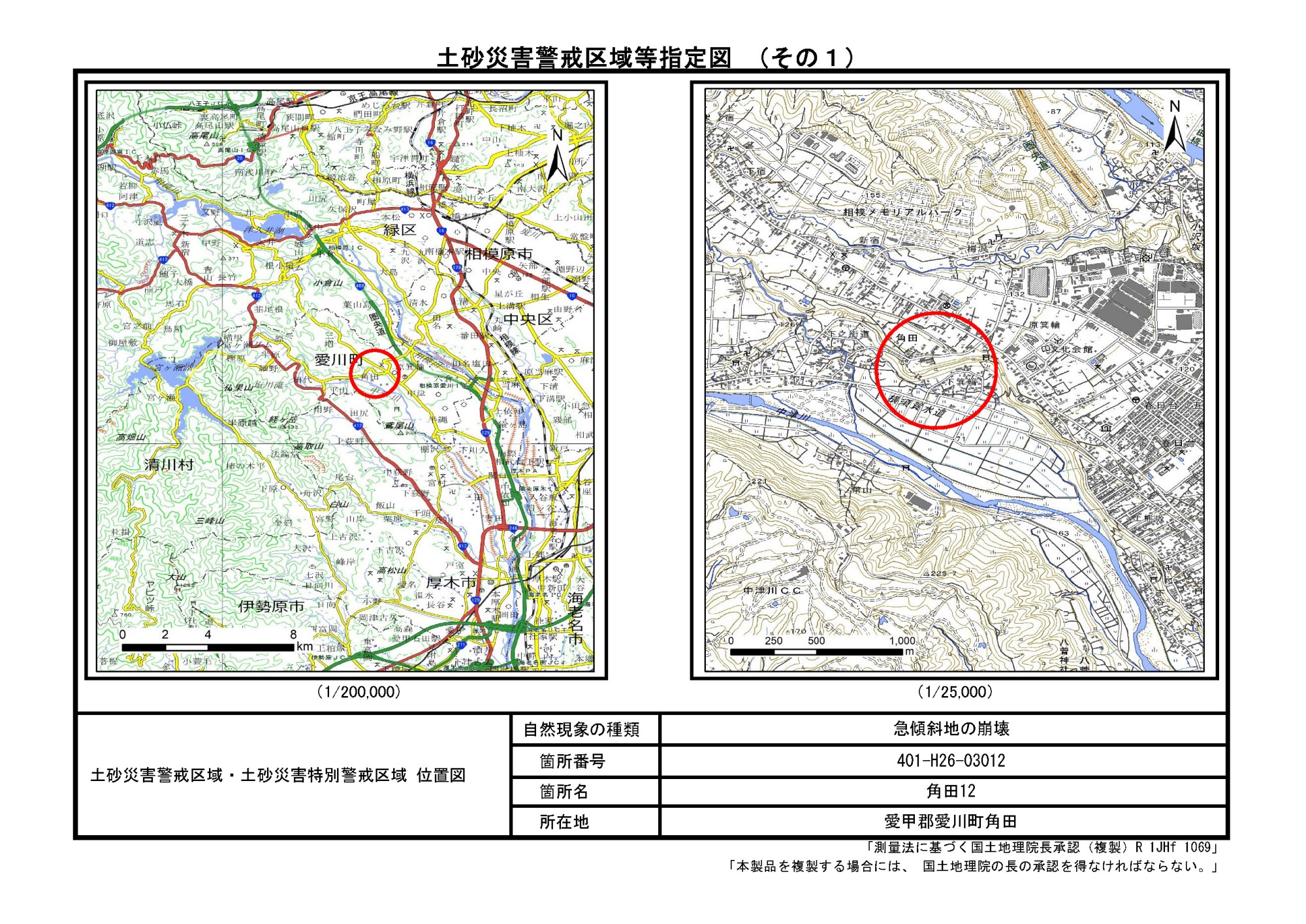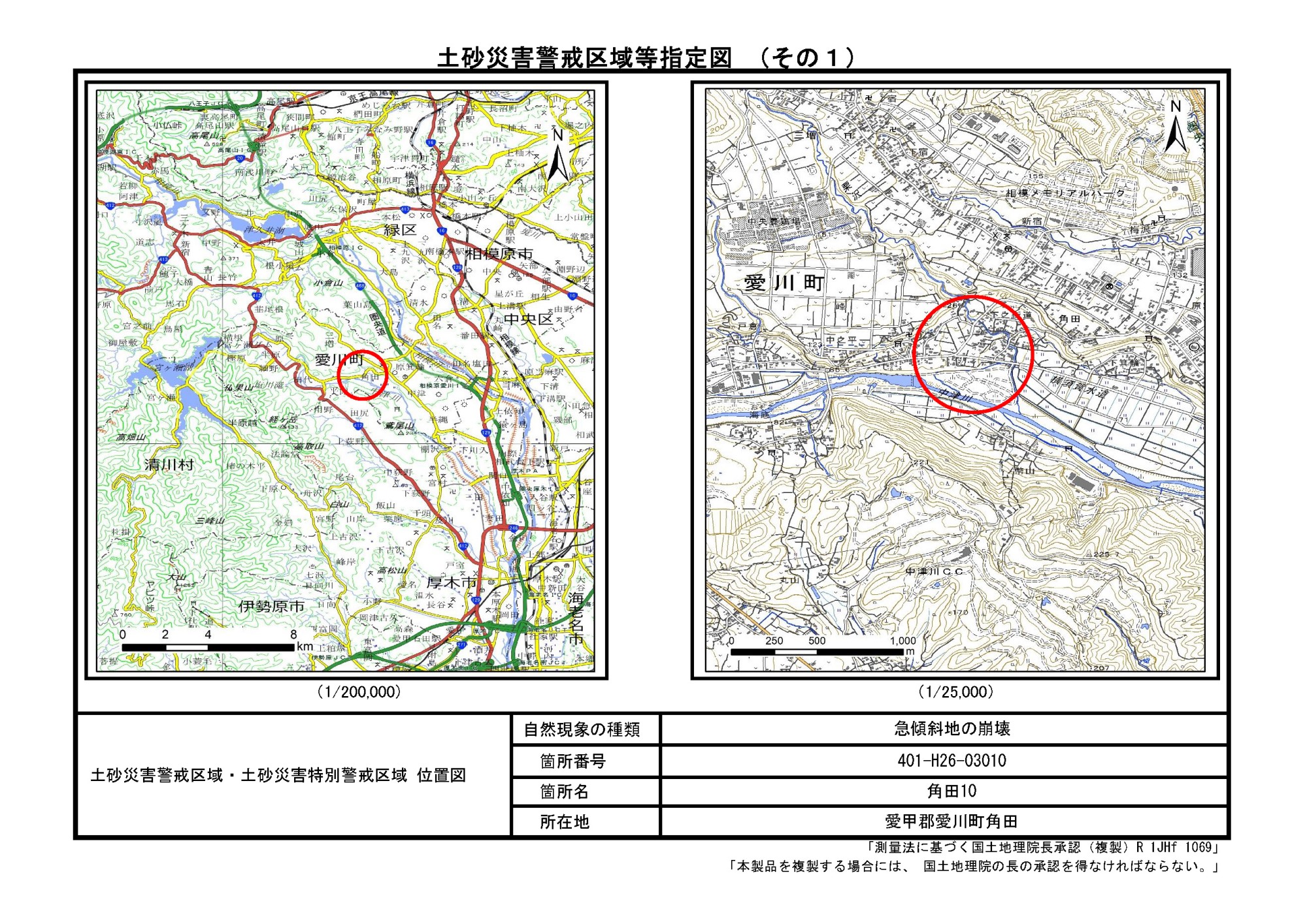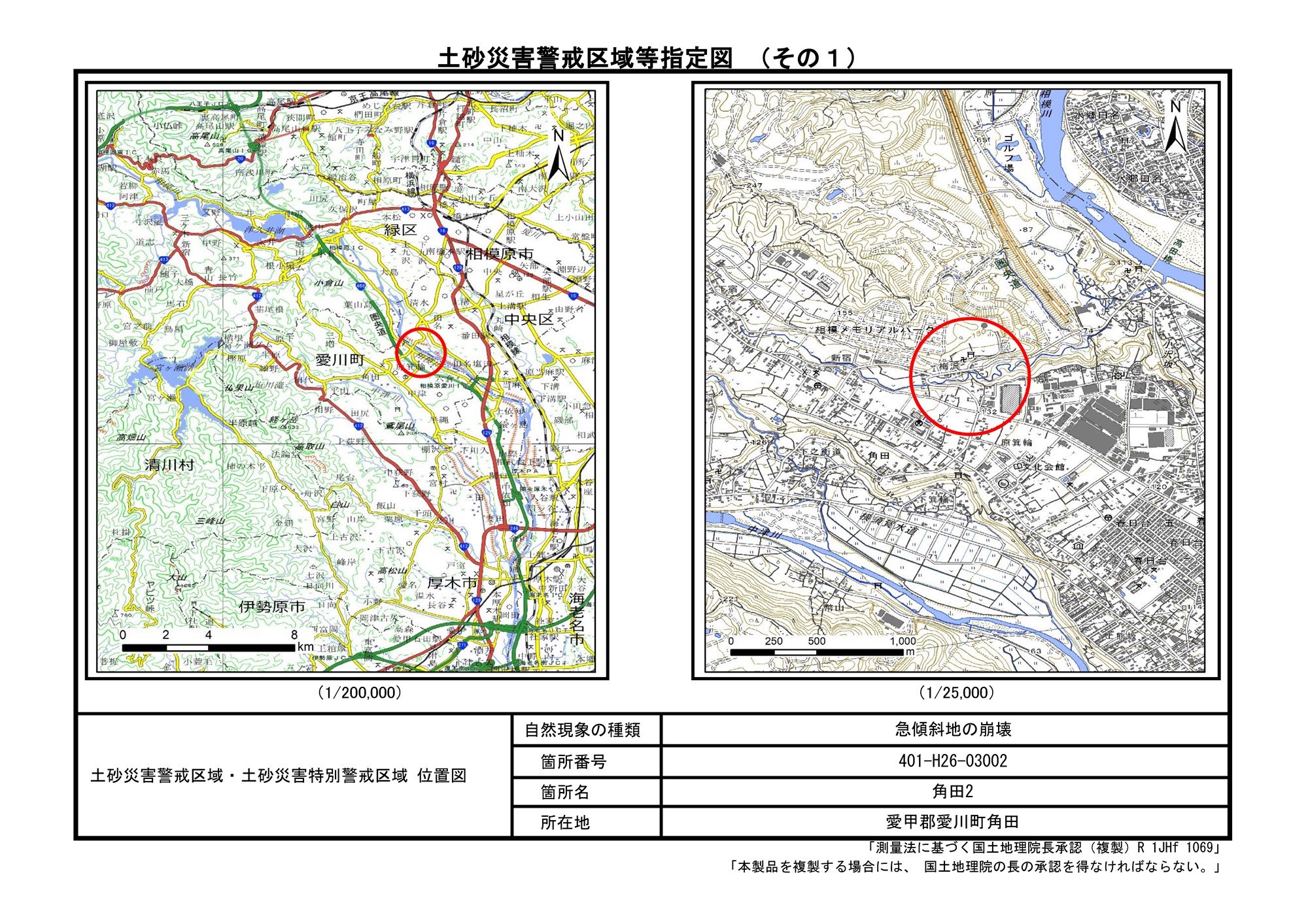 土砂災害警戒区域及び土砂災害特別警戒区域 告示図書