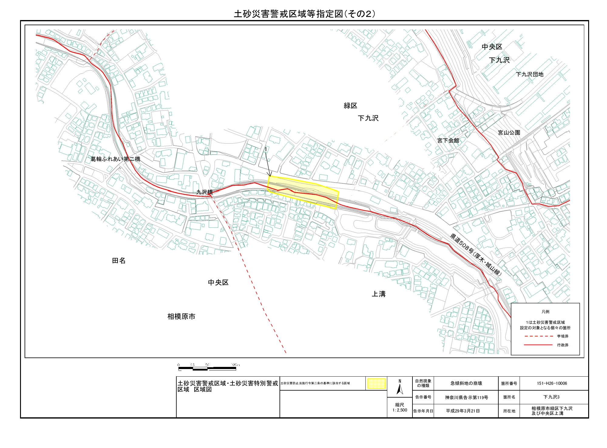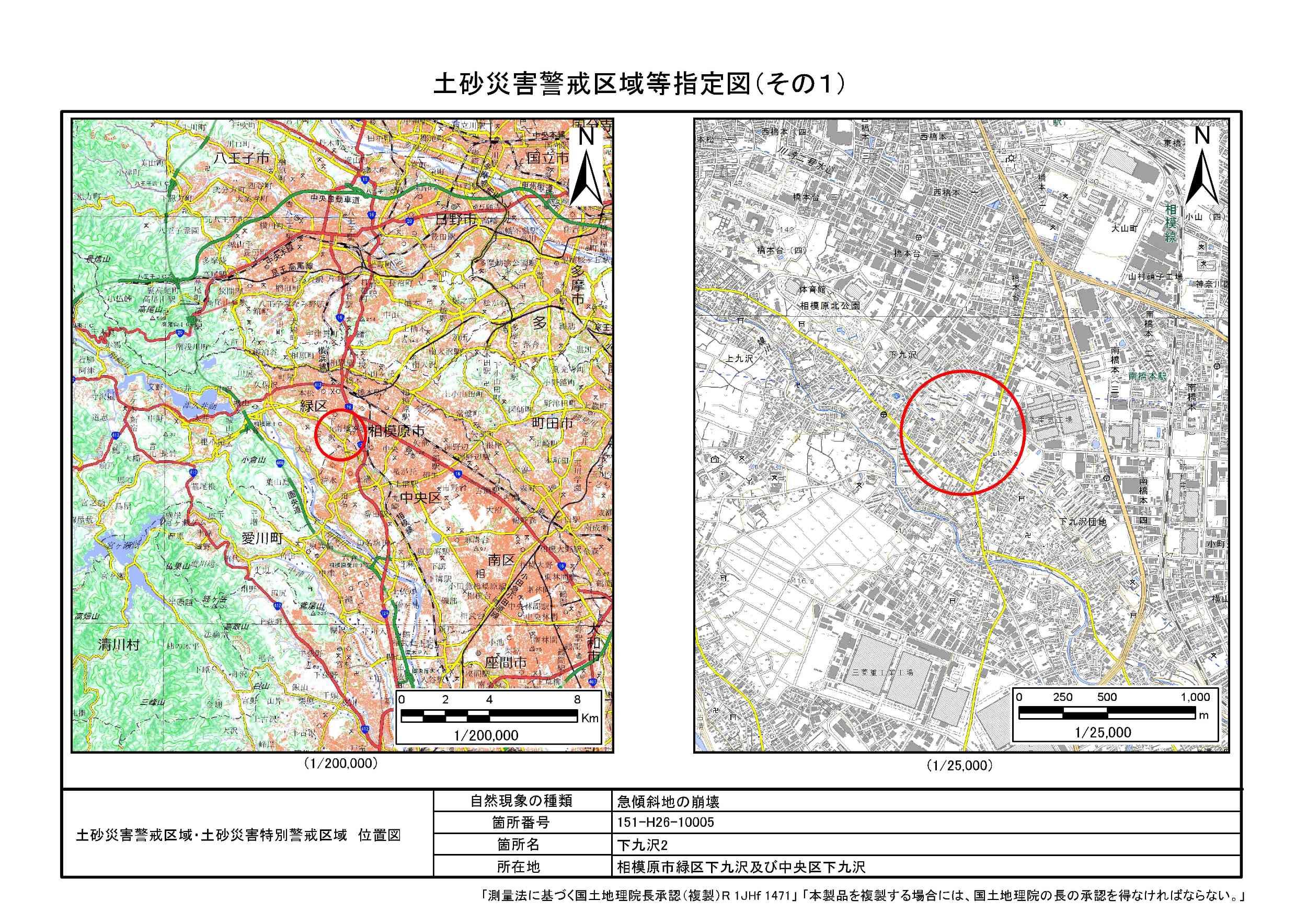 下九沢及び中央区上溝1丁目 ※中央区と緑区に 跨るため両区に掲載 |