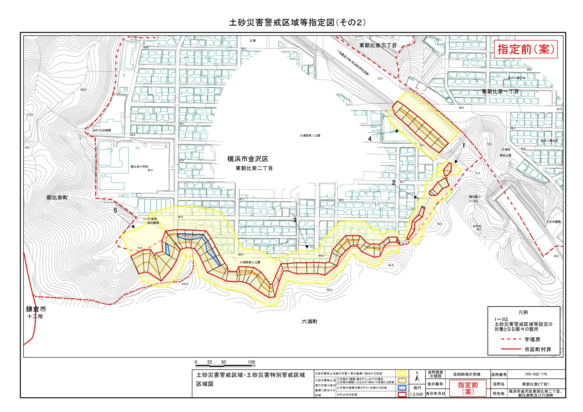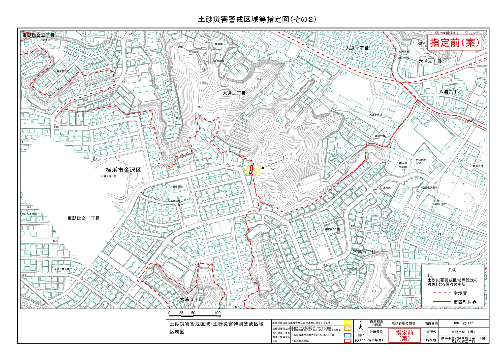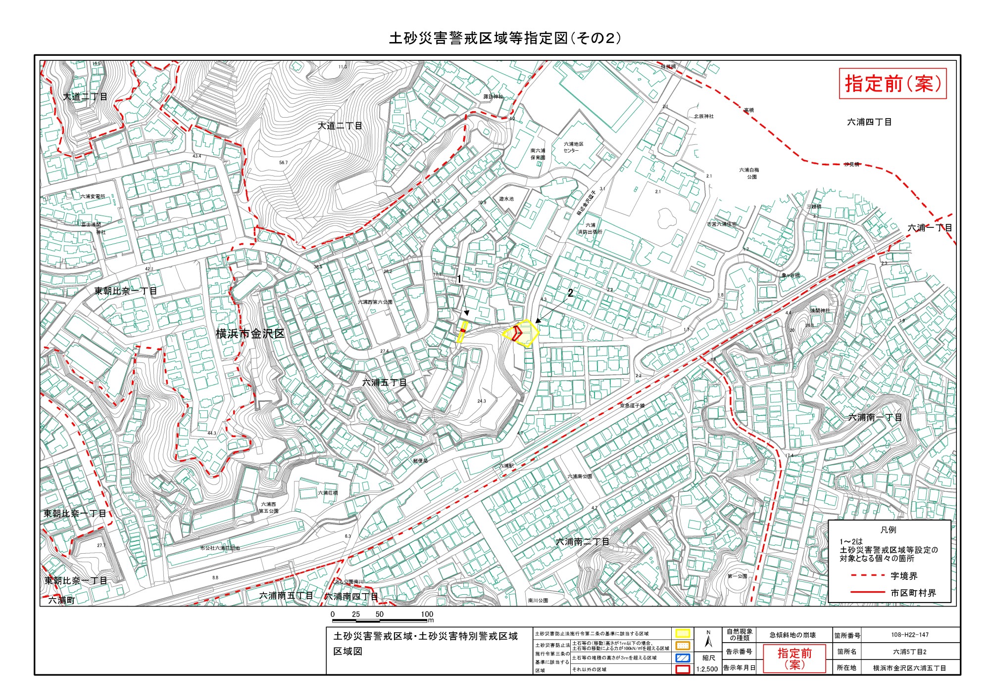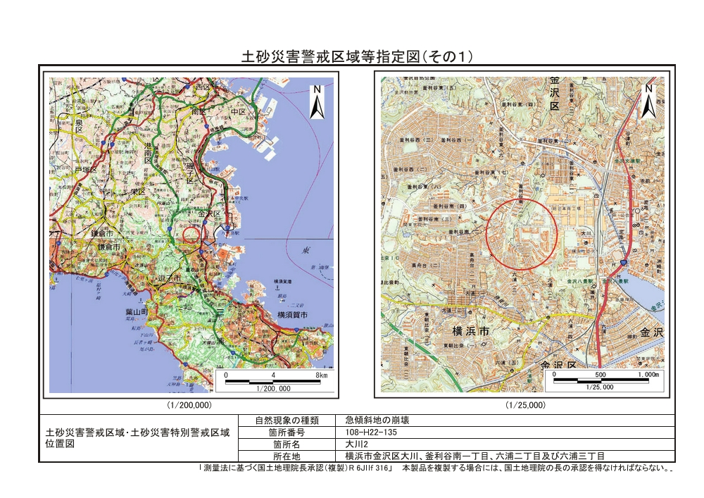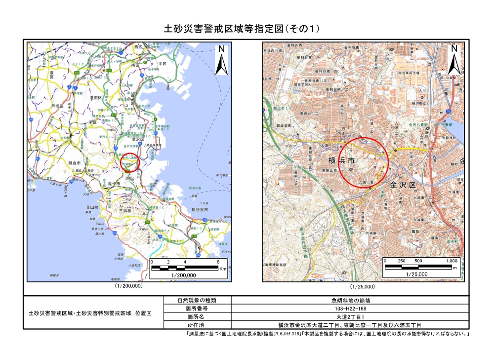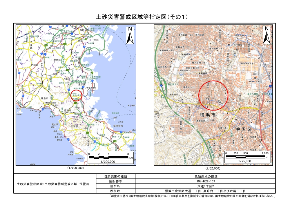 大道二丁目、東朝比奈一丁目及び六浦五丁目 |