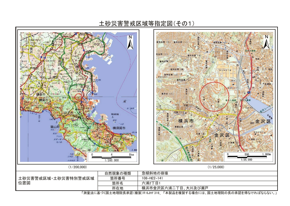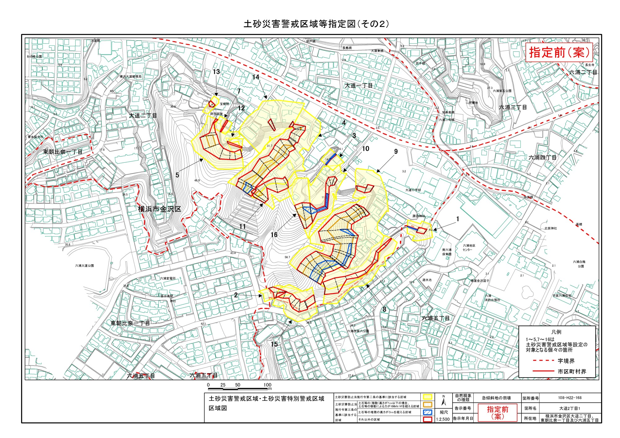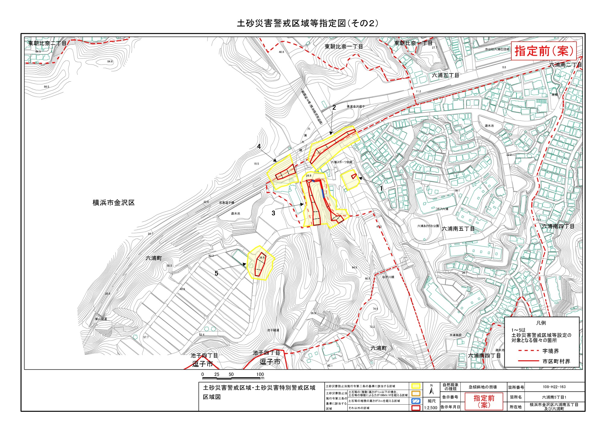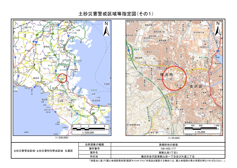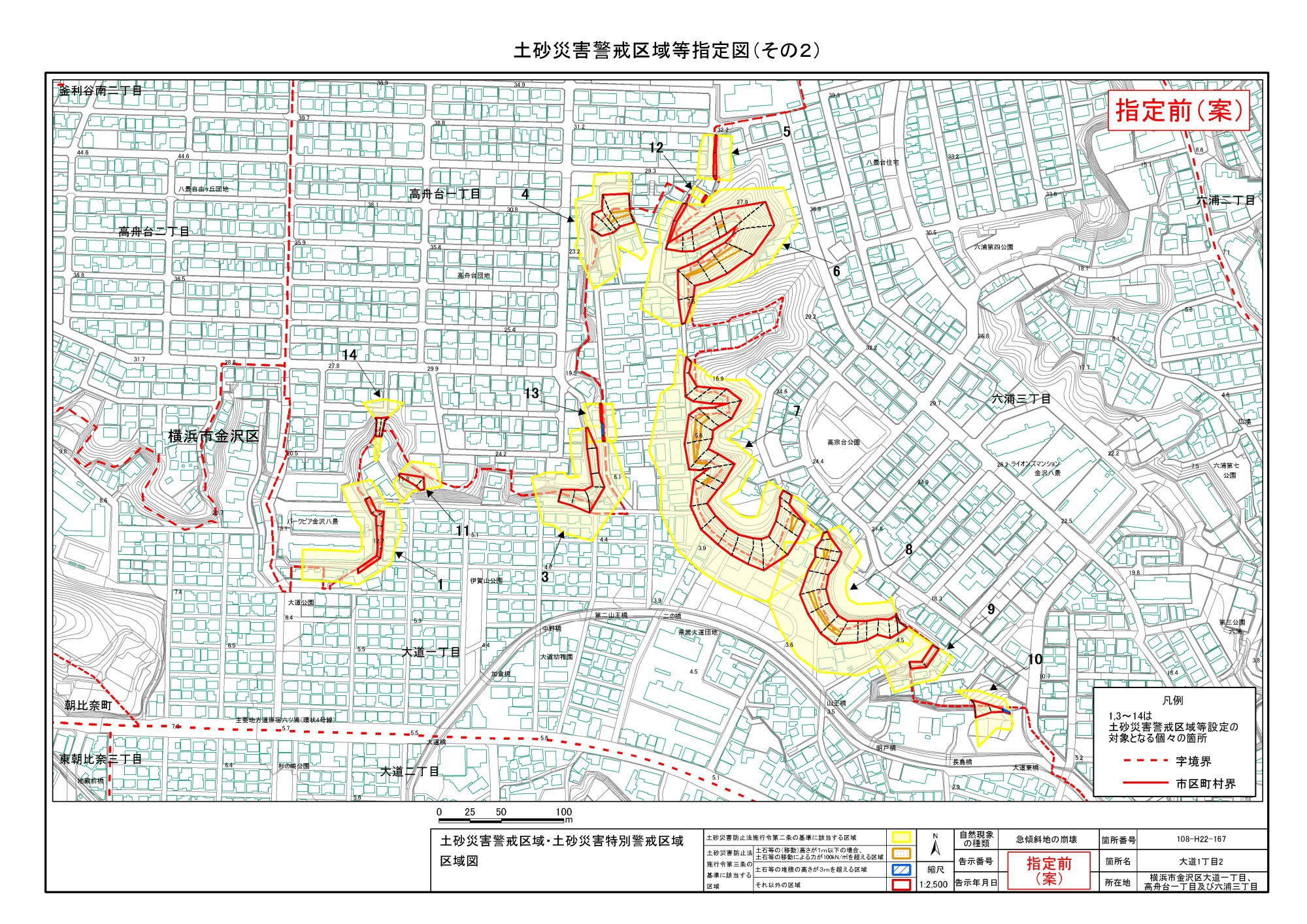 大道二丁目、東朝比奈一丁目及び六浦五丁目 |