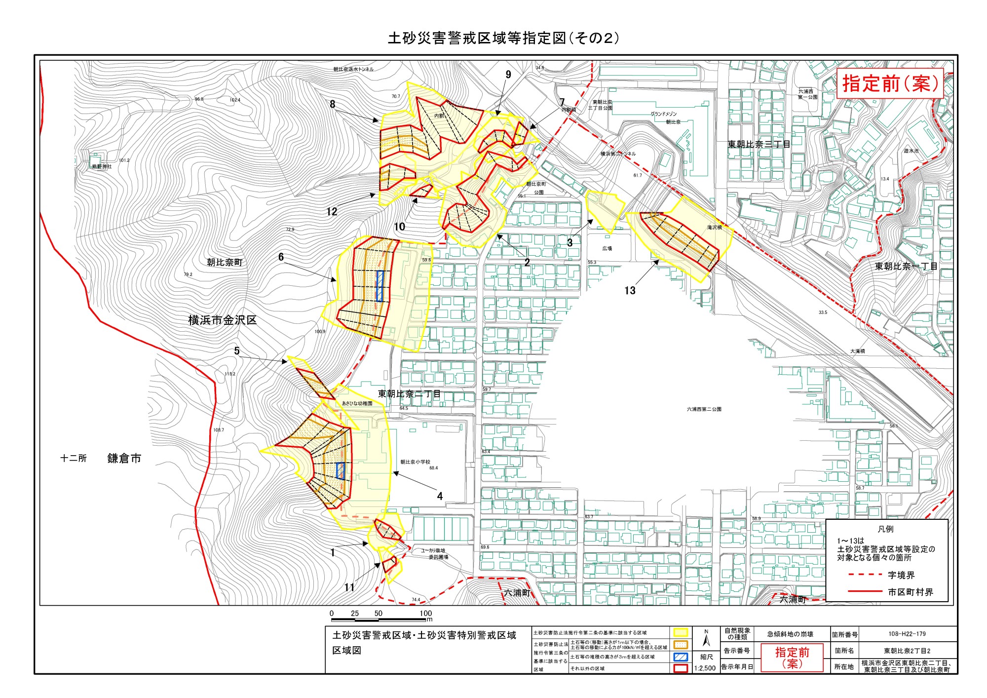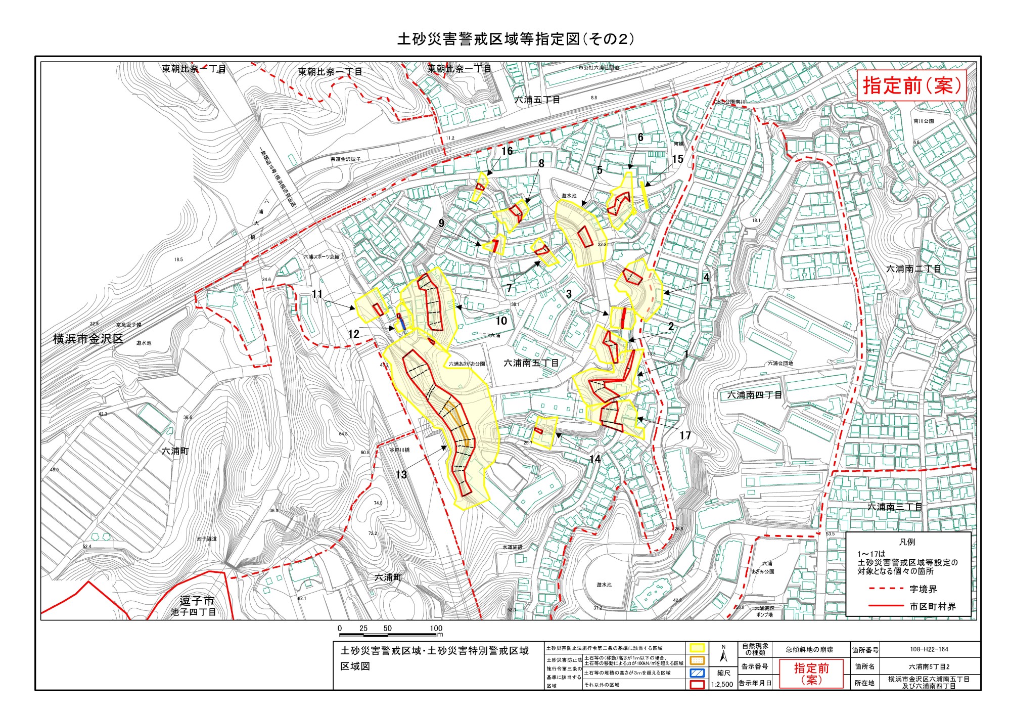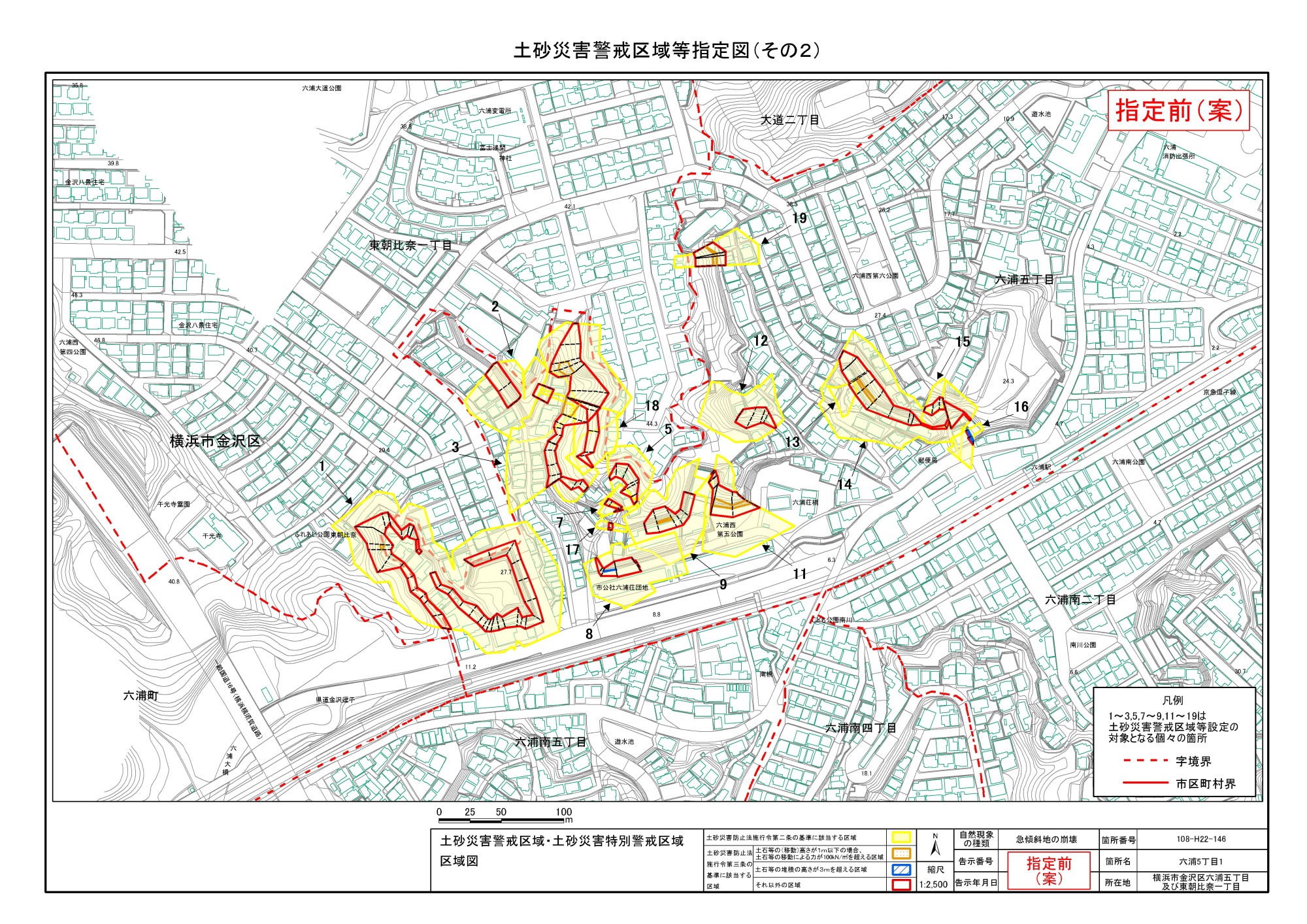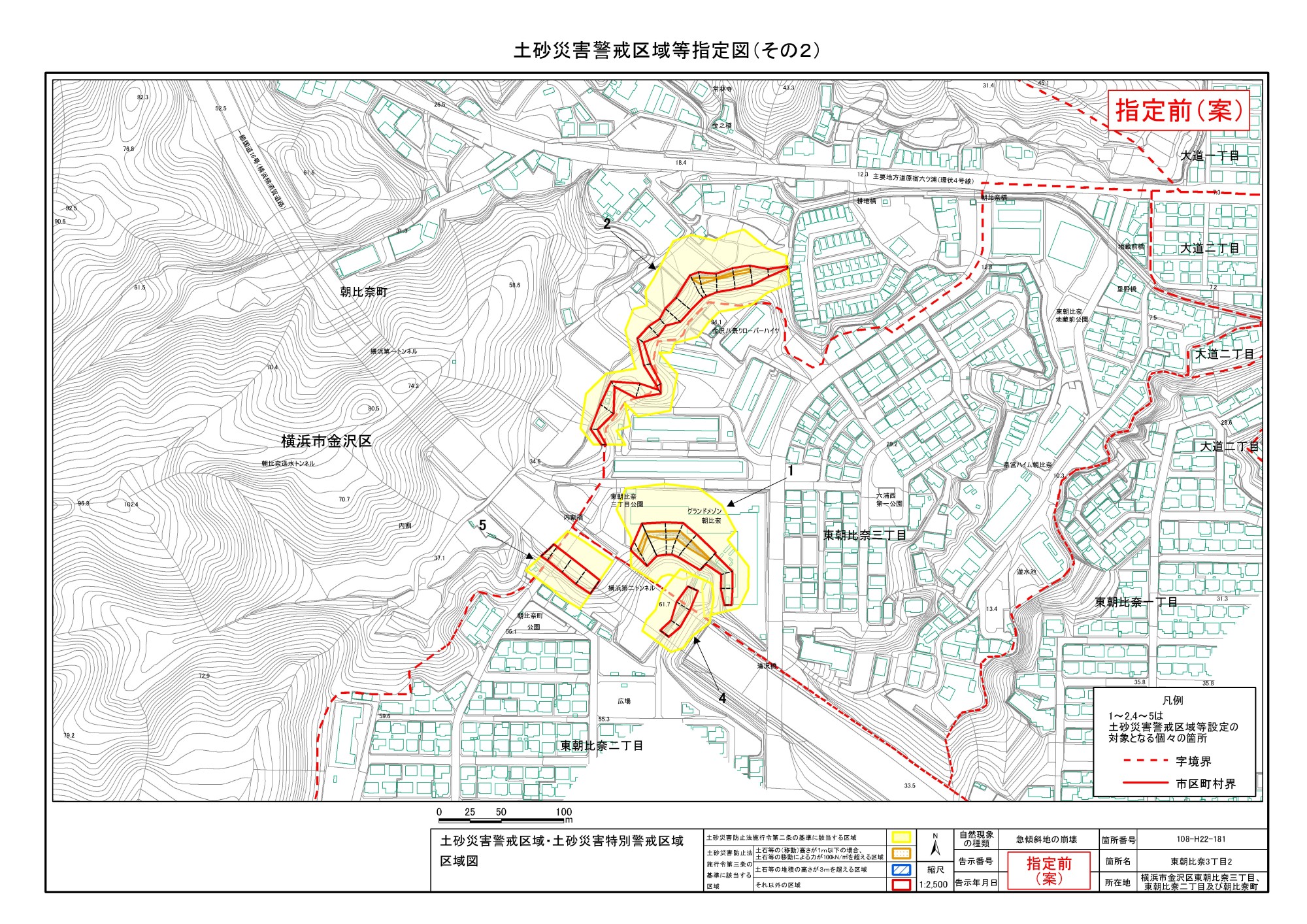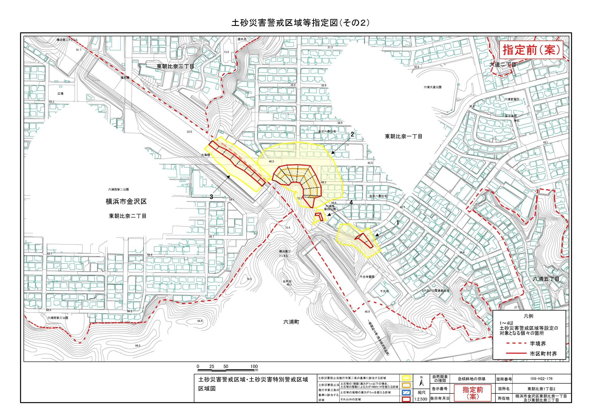 大道二丁目、東朝比奈一丁目及び六浦五丁目 |