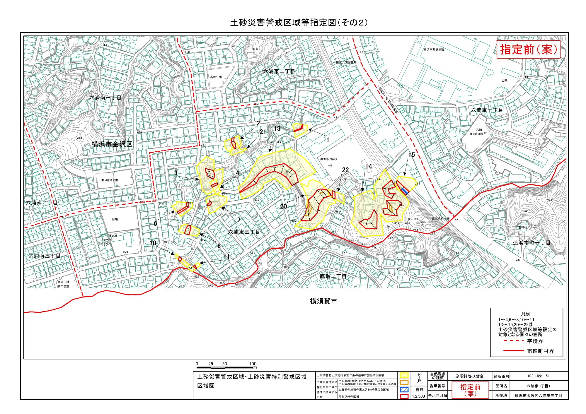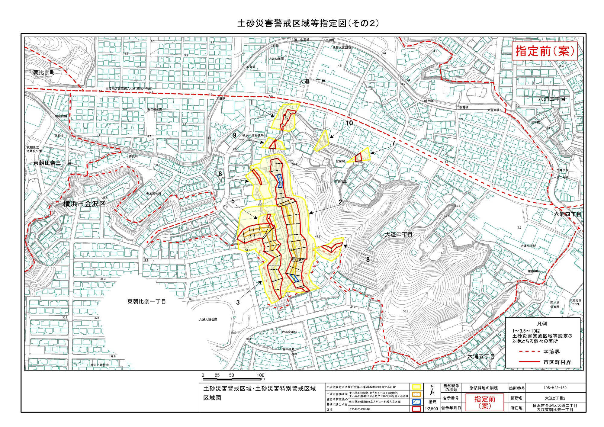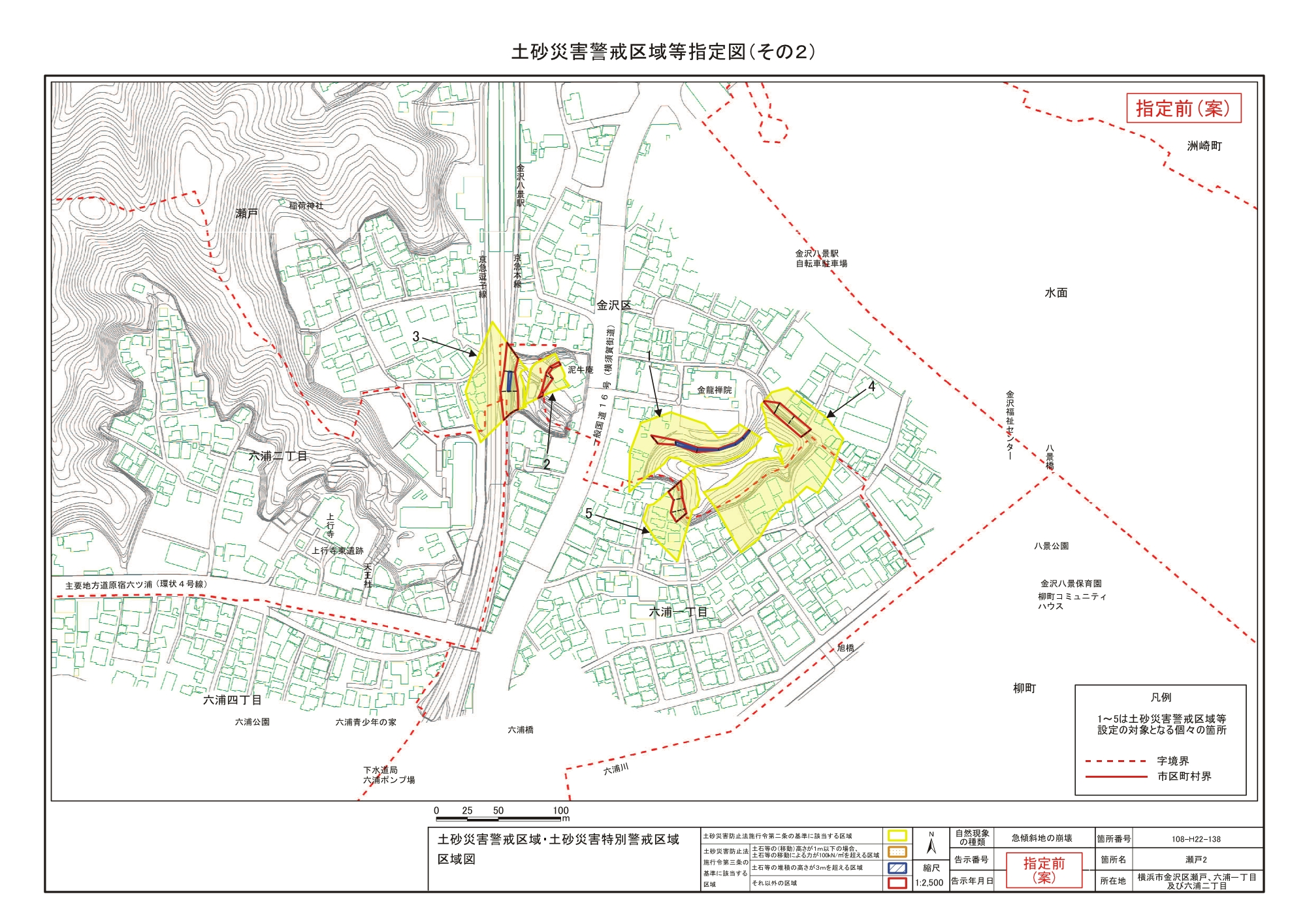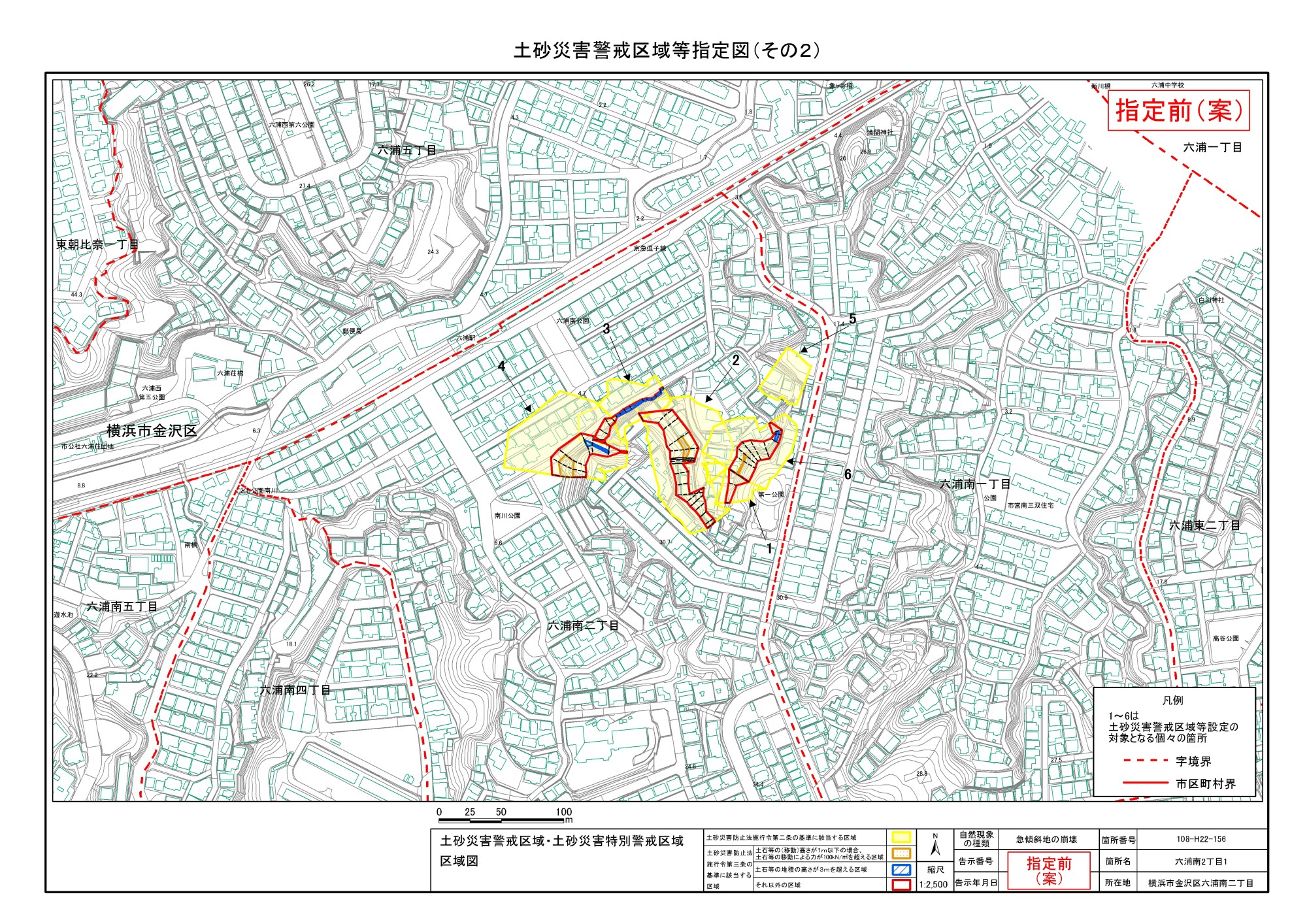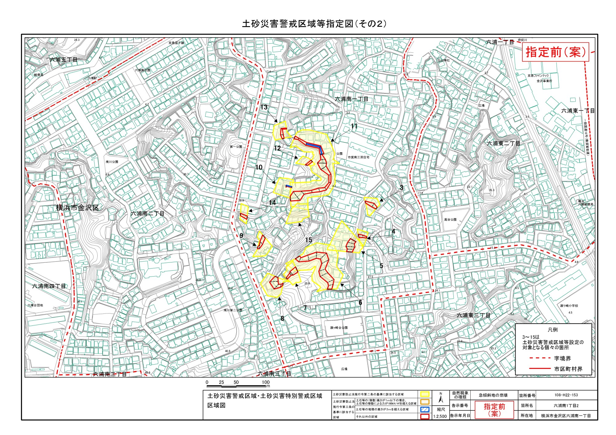 大道二丁目、東朝比奈一丁目及び六浦五丁目 |