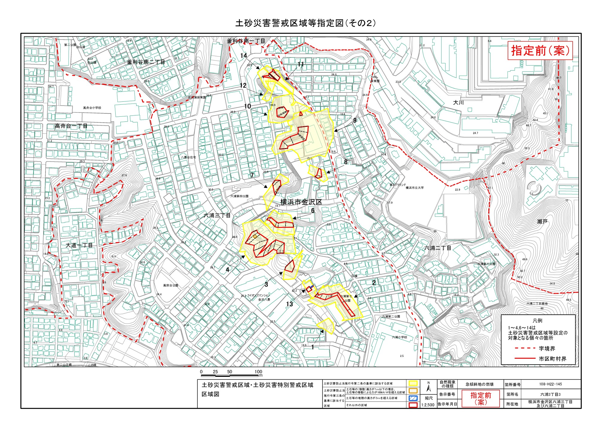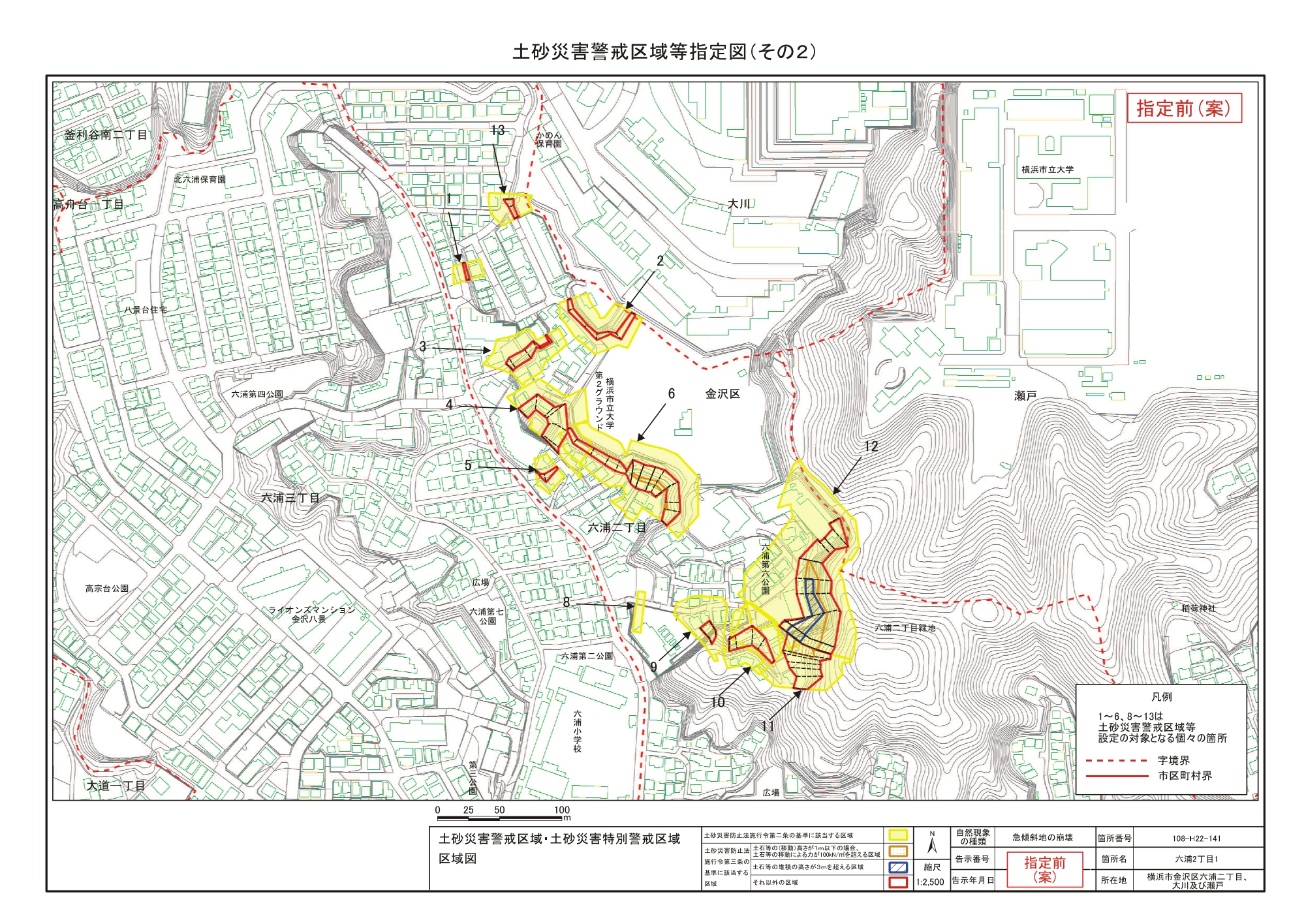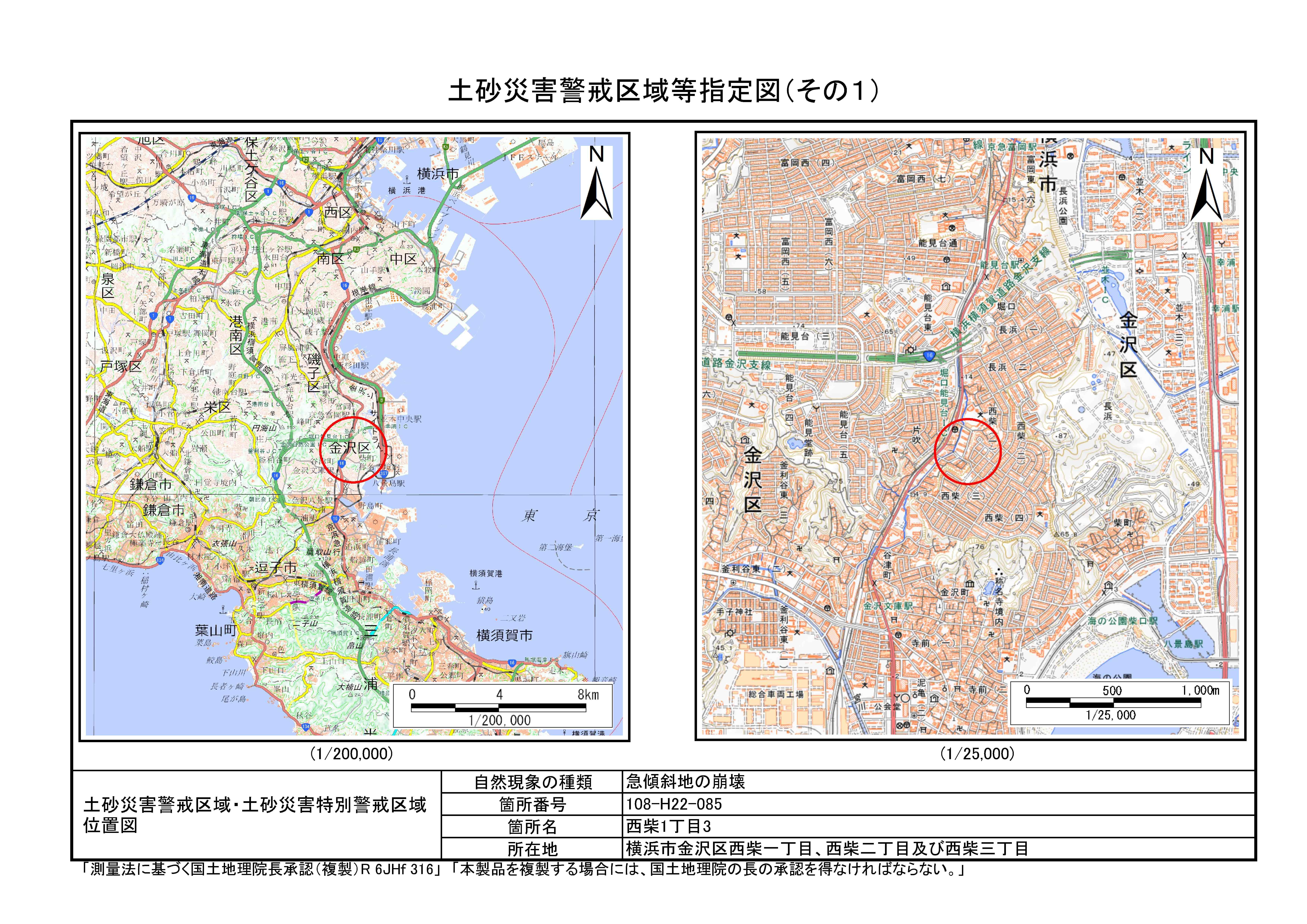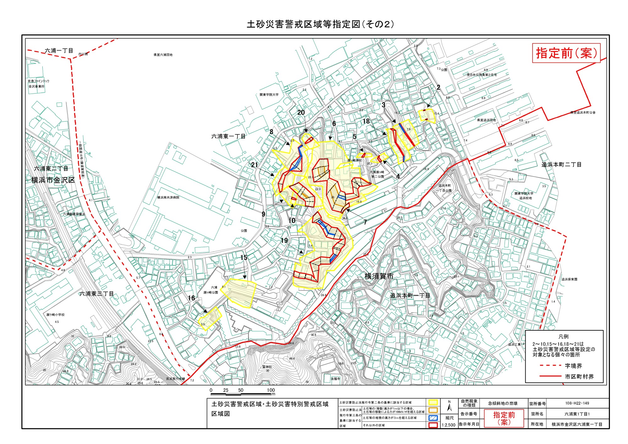 大道二丁目、東朝比奈一丁目及び六浦五丁目 |