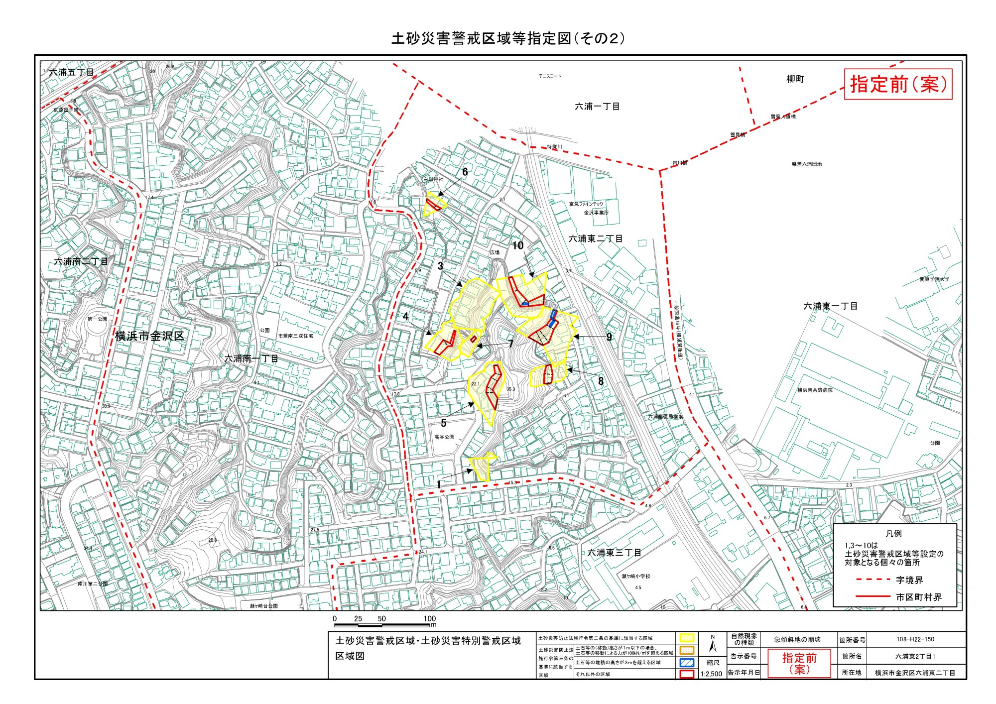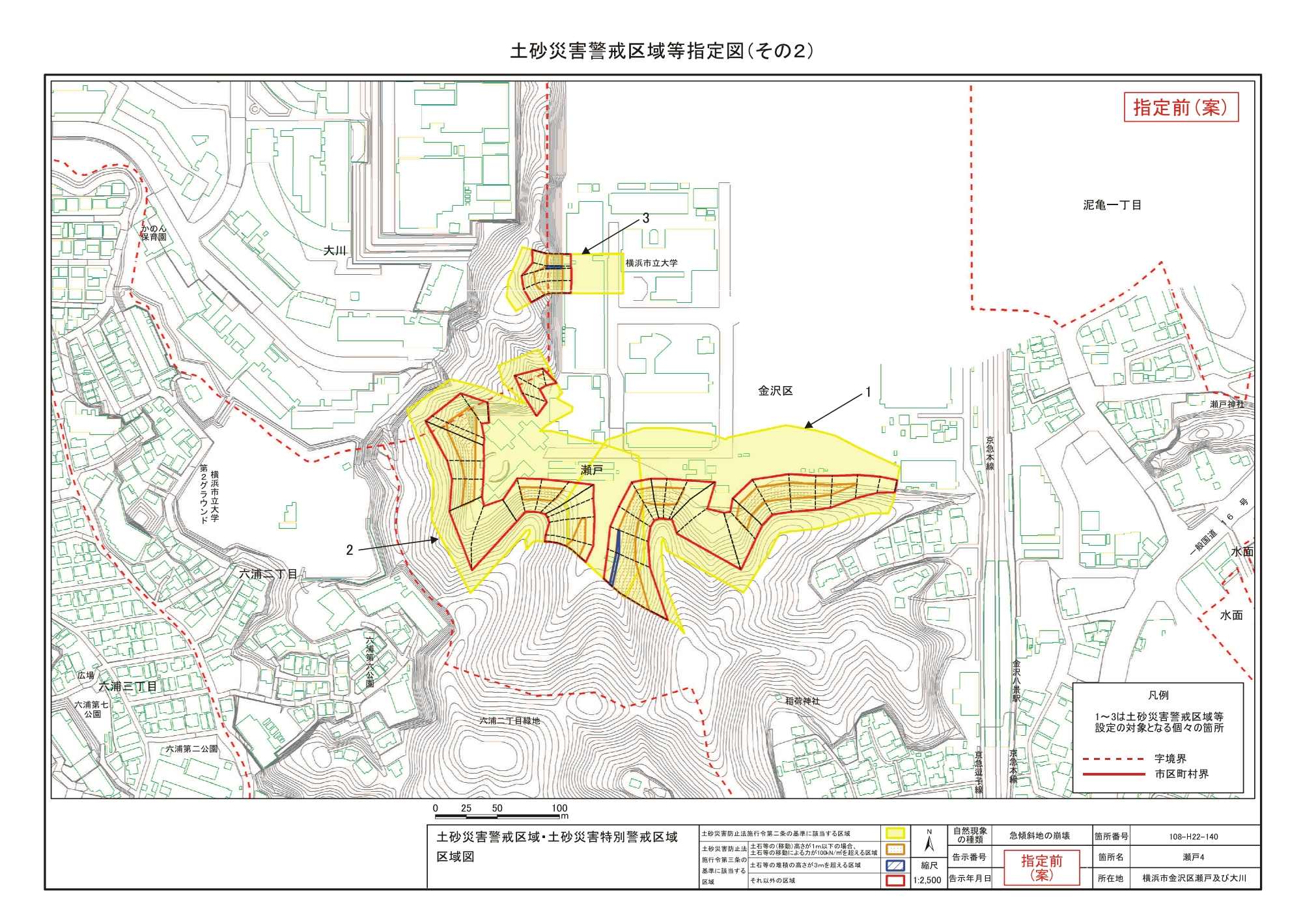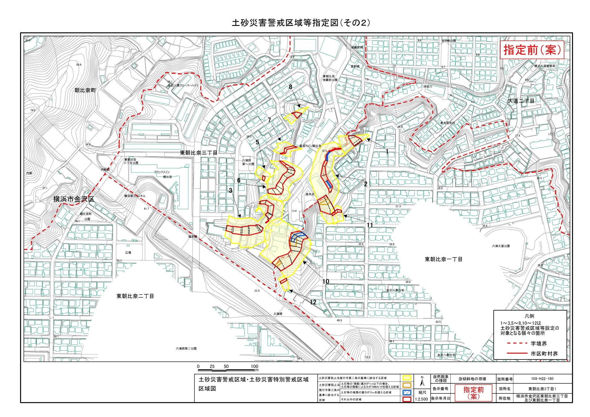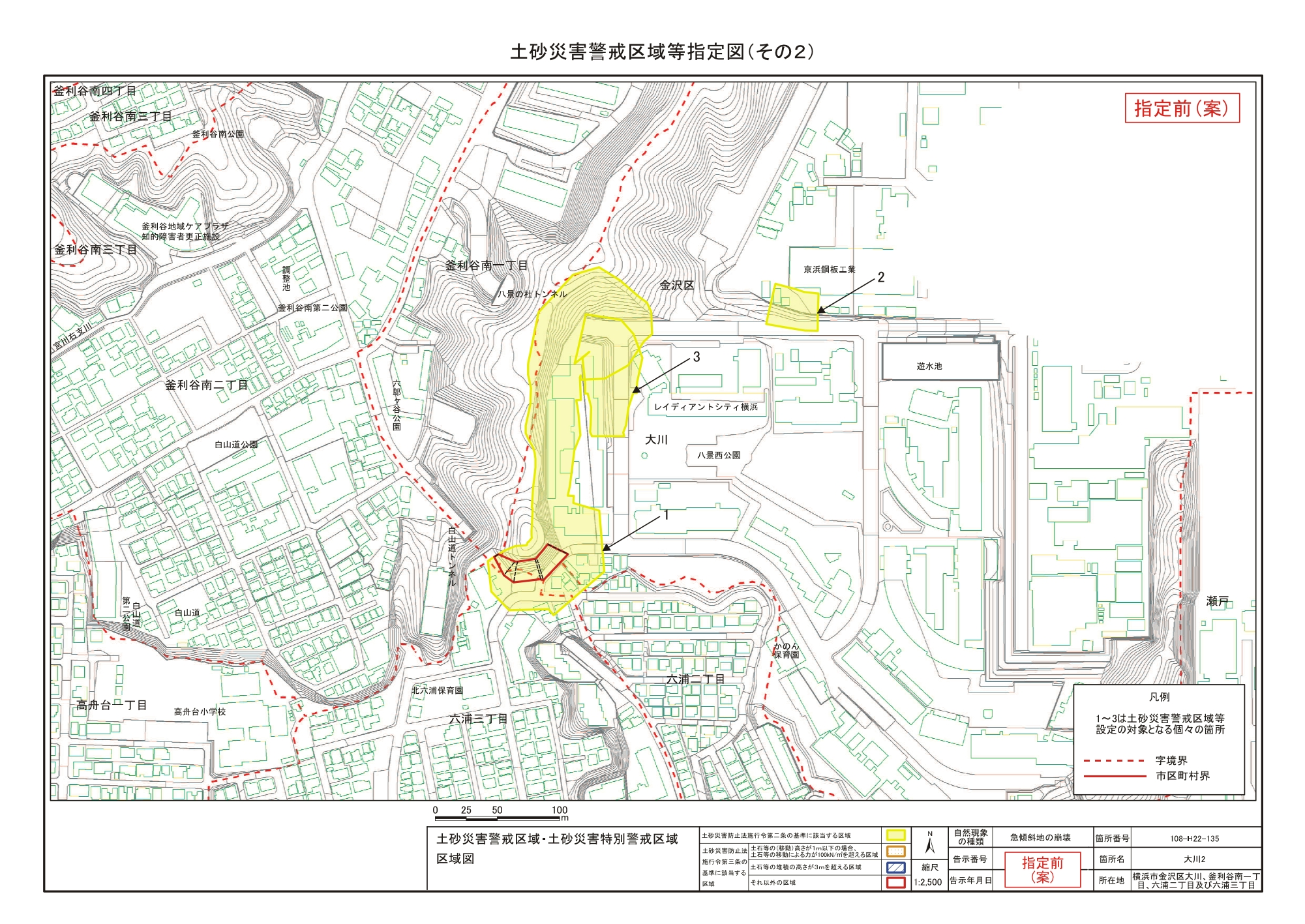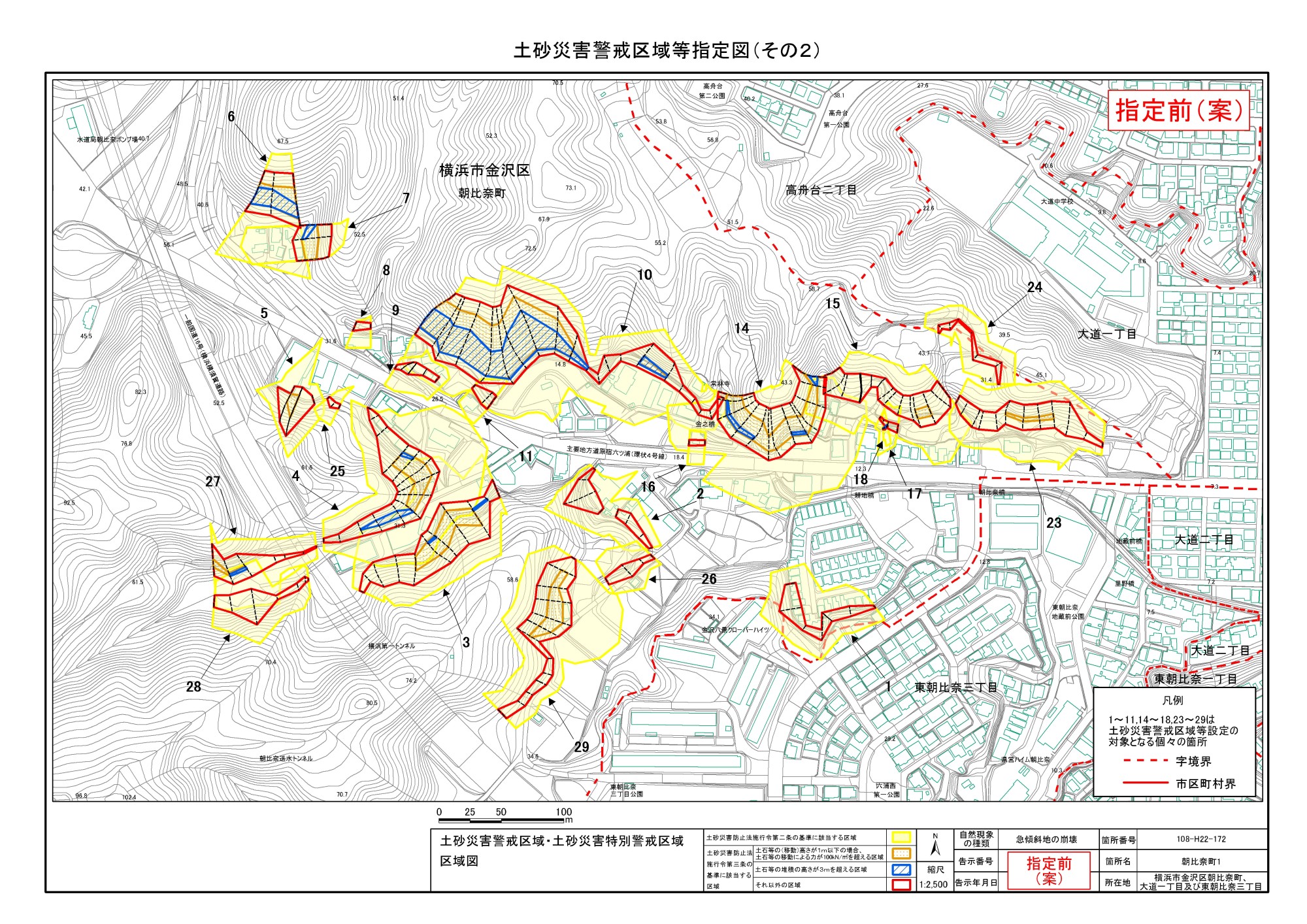 大道二丁目、東朝比奈一丁目及び六浦五丁目 |