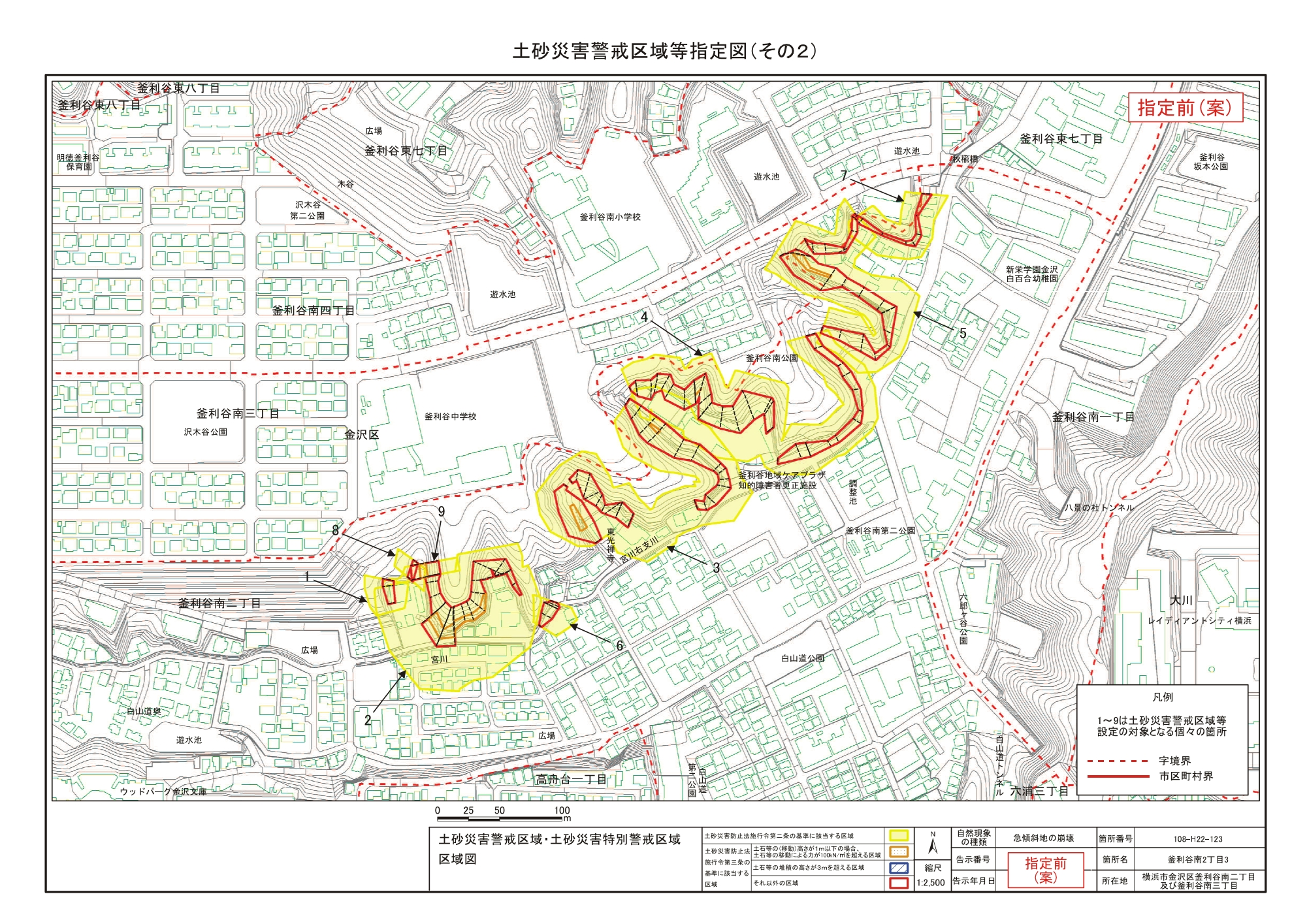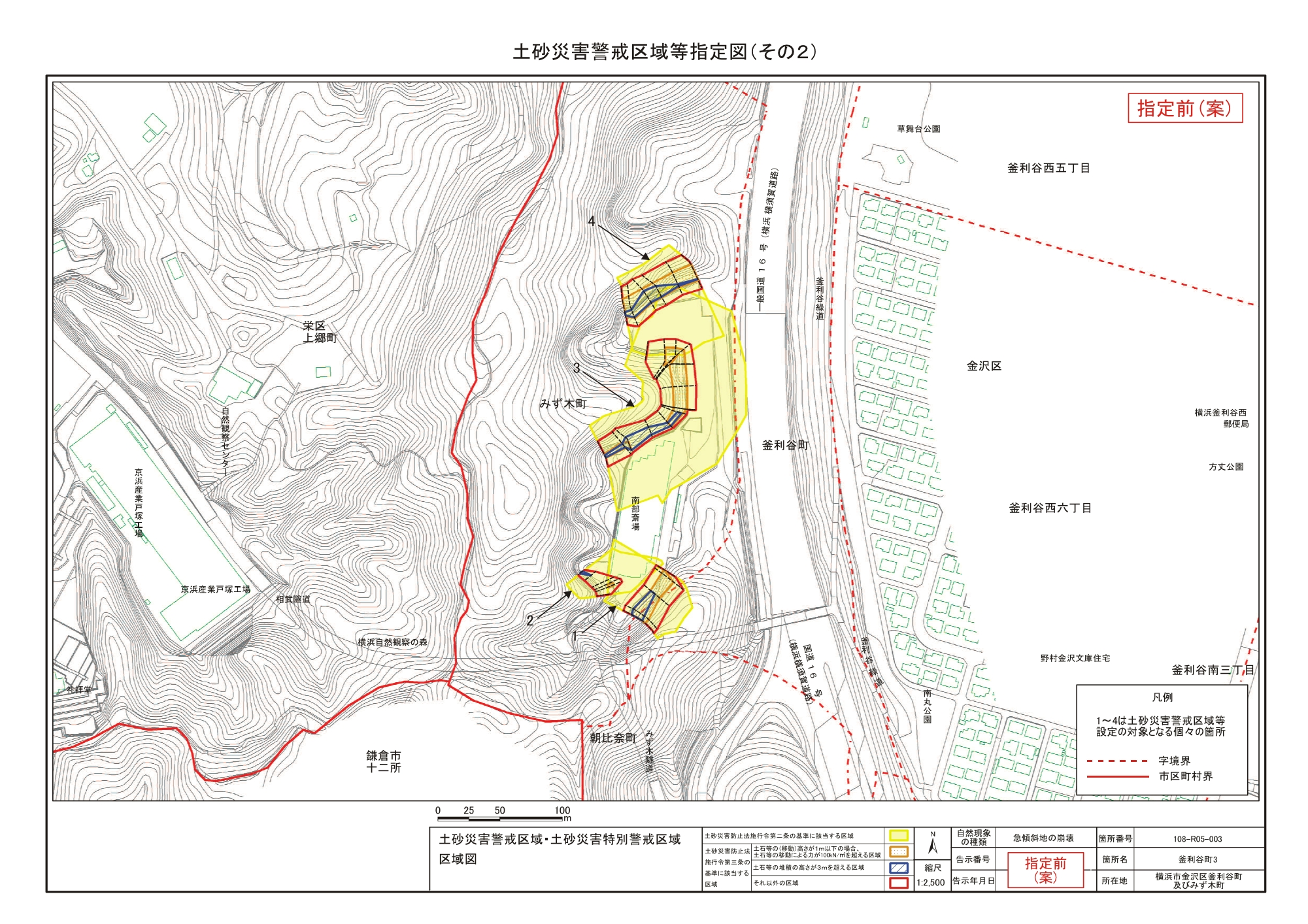 高舟台二丁目、朝比奈町、釜利谷南二丁目及び釜利谷南三丁目 |