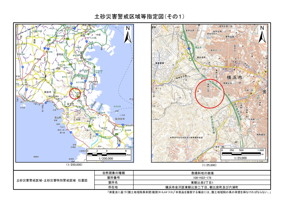東朝比奈二丁目、朝比奈町及び六浦町 |