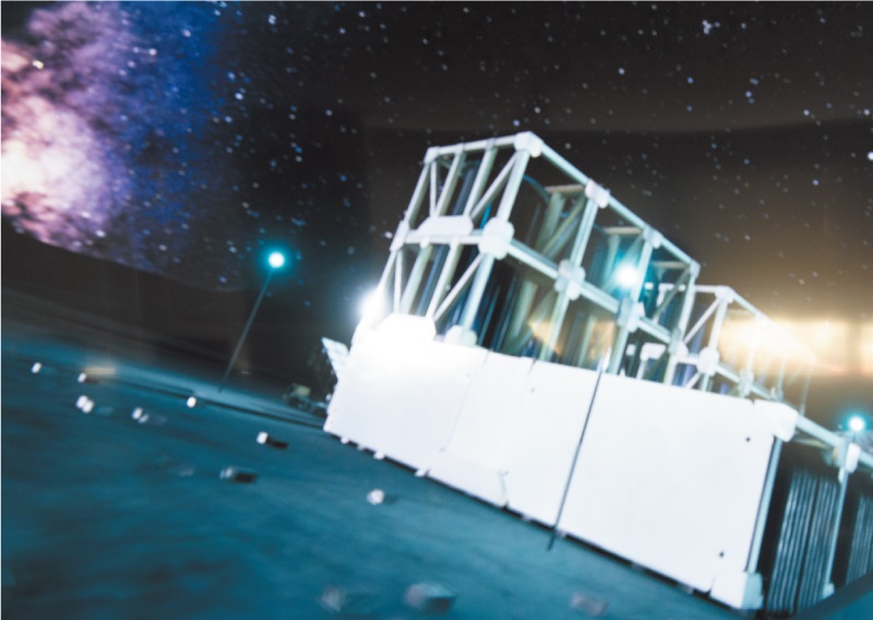 月面ローバーに乗って、月面基地や通信設備、月面港などを見学することができます。