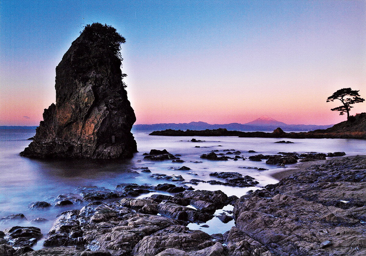 立石海岸からの朝焼けの富士山です。波打ち際の波を抑えて撮るため、シャッタースピードを長く設定して撮影しました。